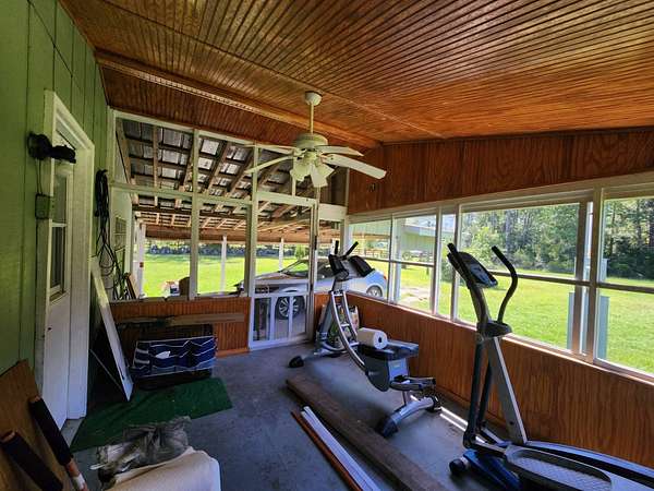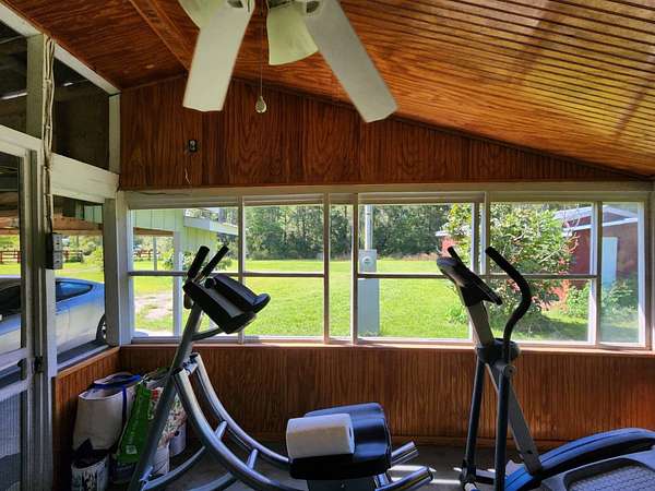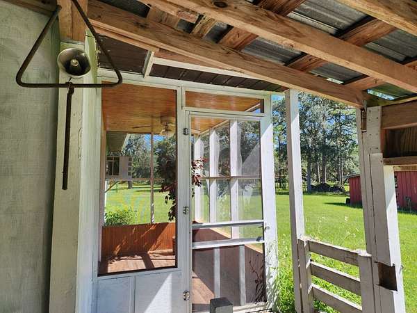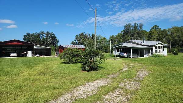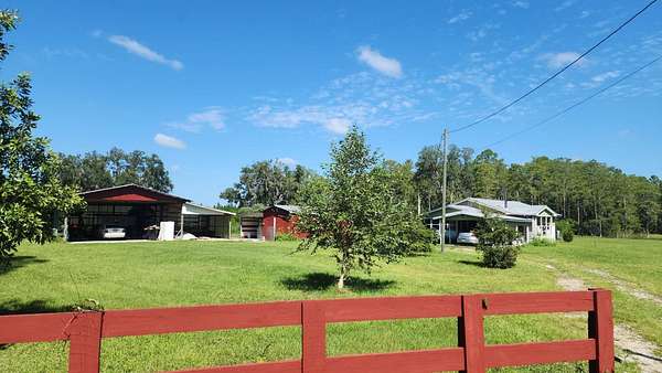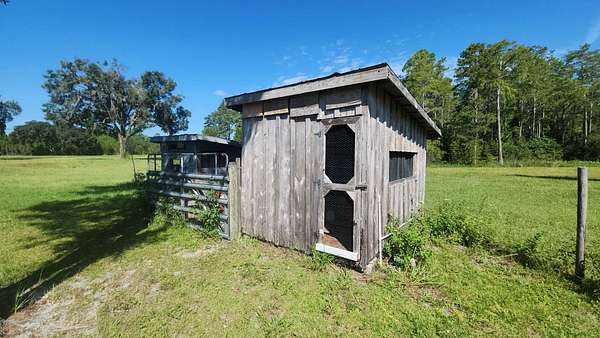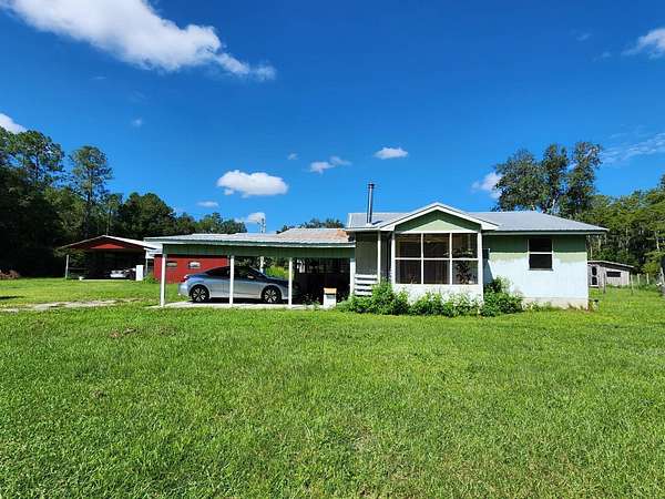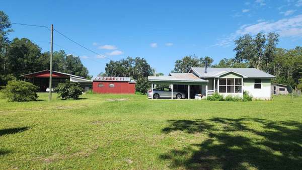 Cypress House in Quiet Country Location. This property has endless possibilities for small town country living, farm animals, fruit trees, peace and quiet, and also offers high speed fiber optic internet. No HOA and No Deed Restrictions. Custom built home with 2 bedrooms, 1 bath, roomy eat-in kitchen and cozy living room with wood burning stove. Lots of windows and natural light. Enclosed porch/sun room on the front and large screened porch with picturesque pasture views with large oaks. Attached carport. Separate workshop with attached laundry room and a thick slab that connects to a roughly 30x40 pole barn with additional lean-to with connected concrete slab. 8 stall barn that has been partially closed in has lots of possibilities. Chicken coop with custom egg gathering door and separately fenced chicken yard. Tall chainlink fenced area to protect your garden from deer and other wildlife. Property is fully fenced with a separate gated paddock area. It features large section of planted cypress trees. At the end of a dead end road, 4 miles from the town of Branford. In between the Suwannee and Santa Fe Rivers. This is a must see to appreciate the quiet country surroundings! Call to schedule an appointment today!