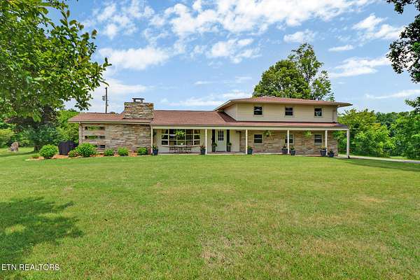 Historic Stone Farmhouse on 7.8 Acres in Crossville, TN. Originally built by the U.S. Army on a 250-acre estate, this 5-bedroom, 3-bath stone farmhouse sits on 7.8 serene acres with seasonal mountain views and a rich local history. Thoughtfully renovated, the home blends timeless charm with modern upgrades--original hardwood floors, renovated tile bathrooms, shiplap accents, and a grand stone fireplace. The kitchen features stainless appliances, leathered granite, and updated systems throughout, including two tankless water heaters. Enjoy stargazing by the outdoor stove or watching wildlife from the expansive patio. A 28x 40 pole barn comes with this property as well as approx. 430 feet of raised garden beds. Located on a quiet dead-end road with long frontage, this property offers privacy, character, and convenience--just minutes from Crossville's golf courses, state parks, and cultural attractions. A rare opportunity to own a piece of local history with modern comfort.