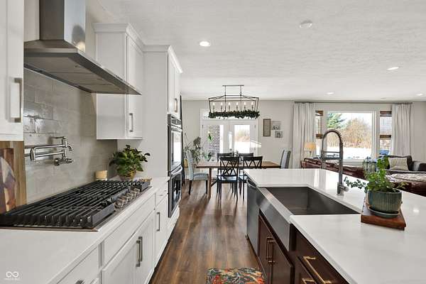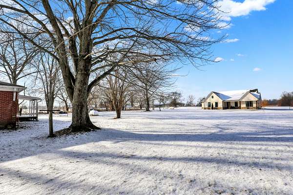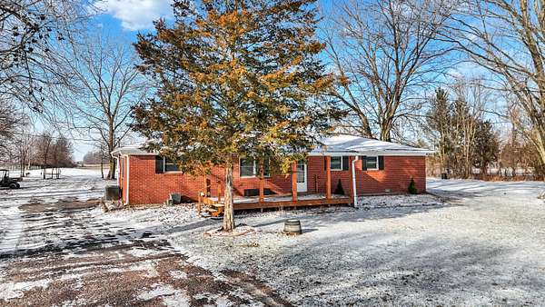 Welcome home to this truly rare 7-acre estate featuring two homes and endless possibilities! The main residence is a stunning custom ranch built in 2023 with 4 bedrooms & 3.5 baths, thoughtfully designed to capture breathtaking sunsets and expansive views through picturesque windows. A dedicated office/library provides the perfect space for working from home or quiet retreat. At the heart of the home is a chef's gourmet kitchen featuring a gas range with pot filler, built-in double ovens, & generous workspace, ideal for everyday living & entertaining. The primary suite offers serene views of the property, a spacious ensuite bath, & a large walk-in closet with direct access to the laundry room. Two bedrooms share a Jack-&-Jill bath, while a private in-law or flex suite includes its own separate entrance. Outdoor living is exceptional with a covered patio featuring a wood-burning fireplace & TV mount overlooking the acreage, a large uncovered patio, & a welcoming covered front porch. The second home is a 3-bedroom, 1.5-bath brick ranch with both a covered front porch and covered back deck-ideal for extended family, rental income, or guest use. The land has been thoughtfully enhanced with numerous fruit trees planted over the past five years & several premium raised garden beds ready for use. Perfect for a family compound, homestead, farm, or investment, properties offering this level of acreage, flexibility, and modern construction are rarely available. Each residence is independently equipped with its own private utilities, well, and septic, providing added value & the option to easily parcel the properties separately. Listing details, square footage, and room counts reflect both homes combined (Main house 2538sq ft, brick house 1440sq ft). Don't miss out on this special property!