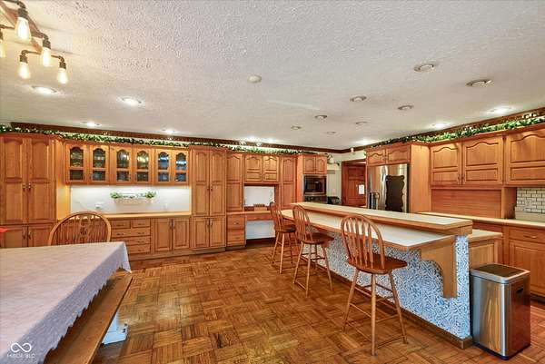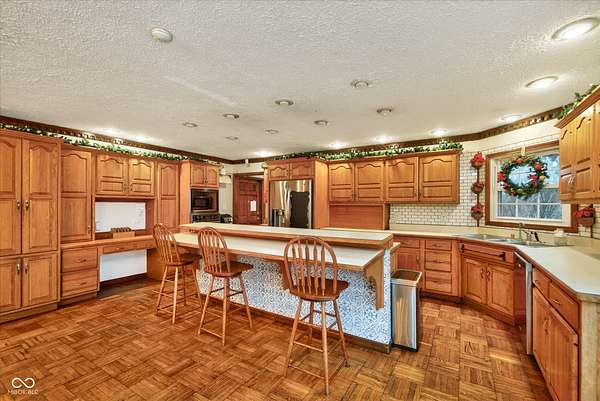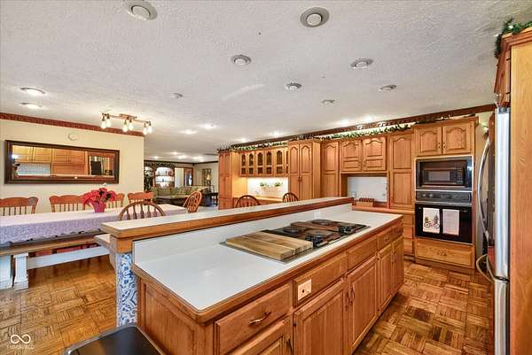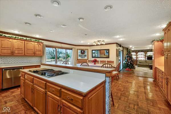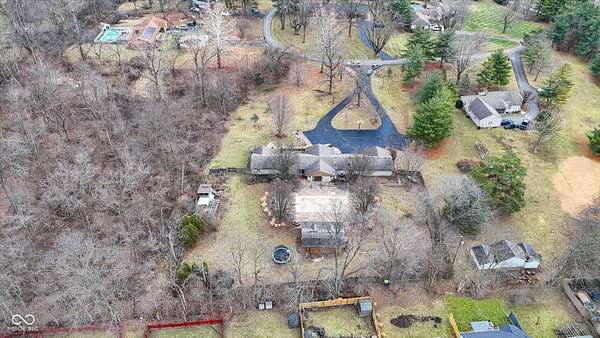 A truly rare find in Fishers with no HOA. Situated on nearly two acres with a pool, pool house, fenced yard and expansive outdoor living spaces designed for both everyday comfort and entertaining. From the moment you arrive, you'll feel the privacy, space, and possibilities this property offers. Inside, the open-concept layout flows beautifully from the great room with its cozy fireplace into the spacious kitchen and dining area. The kitchen is a dream with a large center island for gathering, a planning area, generous cabinetry, and abundant storage - perfect for hosting or simply enjoying daily life. This home offers two private primary suites, ideal for multigenerational living, guests, or in-laws. The main primary retreat features a large walk-in closet and bath with double vanities, while the second suite offers its own ensuite bath and walk-in closet for ultimate privacy and comfort. Step outside to a generous paver patio, pool, and a two-story pool house that adds flexible space for entertaining, hobbies, or relaxation. Lush landscaping and garden areas bloom beautifully in the warmer months, and with no city taxes or restrictions allows for the chicken coop/run! You will love the great location and neighborhood. An oversized three-car garage, peaceful neighborhood setting, and convenient Fishers location make this home the perfect blend of privacy and convenience.