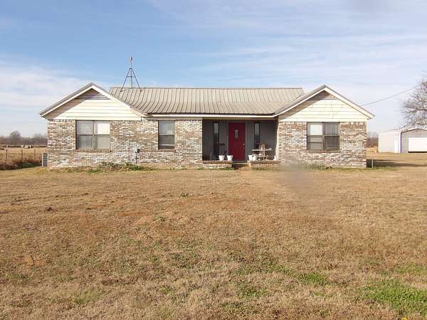 WELCOME TO THIS INVITING 3 BEDROOM 2 BATH BRICK HOME SITTING ON 30 ACRES, PERFECT FOR ANYONE LOOKING TO ENJOY PEACEFUL COUNTRY LIVING. HOME FEATURES A KITCHEN /DINING ROOM AREA WITH A STAINLESS STEEL REFRIGERATOR AND STOVE. FLOORING IN KITCHEN, DINING ROOM AND LAUNDRY ROOM IS LINOLEUM. CARPET IS INSTALLED IN LIVING ROOM, BEDROOMS, HALL, AND EXTRA ROOM THAT COULD BE USED FOR AN OFFICE, HOBBIES OR PLAYROOM. MASTER BEDROOM HAS A BATHROOM WITH STEP IN SHOWER AND VANITY. LAUNDRY ROOM IS LOCATED OFF OF KITCHEN WITH PANTRY. A LARGE ENTERTAINMENT ROOM WITH LAMINATE FLOORING, INCLUDES A SMALL WOOD BURNING STOVE, WHICH MAKES IT A GREAT PLACE FOR GATHERING WITH FRIENDS. THE ROOM ALSO INCLUDES A MINI SPLIT AC/HEATER UNIT . THE HOME HAS CENTRAL H/C UNIT . WELL WATER . HOUSE IS FENCED OFF FROM PASTURE . THERE IS A METAL SHOP WITH ROLL UP DOOR AND WALK THROUGH DOOR, THAT COULD BE USED FOR STORAGE OR FARM USE. LAND CAN BE USED FOR CUTTING HAY OR A FEW HEAD OF LIVESTOCK . WHETHER YOU ARE LOOKING FOR A SMALL RANCH OR PEACEFUL COUNTRY LIVING , YOU CAN MAKE THIS YOUR OWN. CONTACT LISTING AGENT PAM VANSICKLE . 580-579-2094