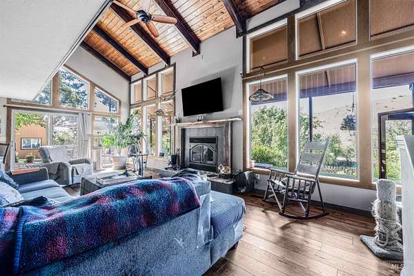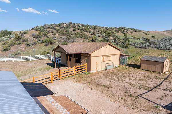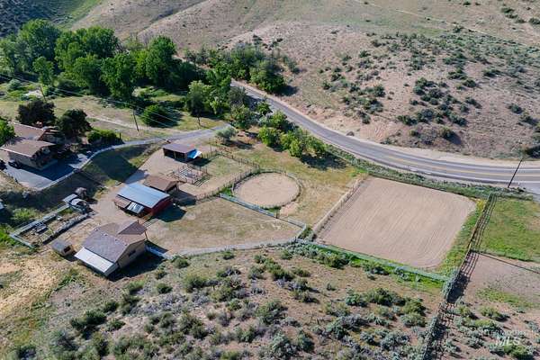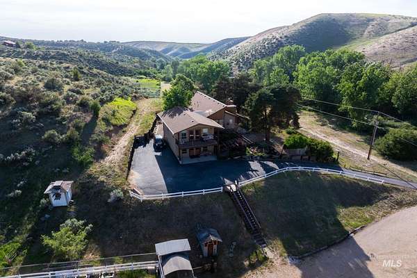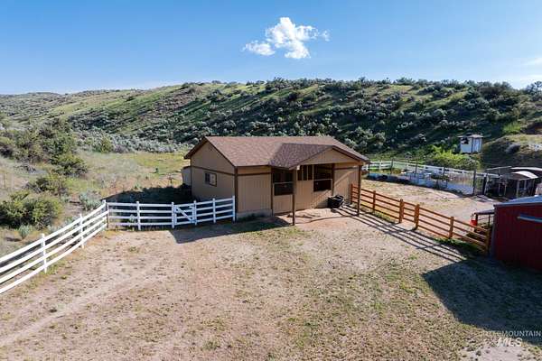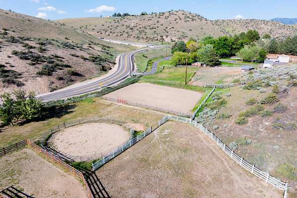 Buyers walked before inspection, no fault of the sellers. Extremely rare equestrian property in the Boise Foothills, just minutes from downtown. 9.05 acres of lush pasture, surrounded by wildlife, with spectacular valley views from most all rooms and especially the hot tub. Unique year round (spring fed) ponds provide pressurized irrigation for the large pasture. 16'x36' shop, riding arena, segregated corrals, barn, tack room, deer-proof garden, chicken coop, and a dog run compliment the site. This 2929sf home was extensively updated/reimagined in 2018-2020 with fully remodeled kitchen, hickory engineered wood flooring, bathrooms, master suite, master bathroom, wood fireplace insert and stucco siding. It features huge windows to maximize natural light and showcase the panoramic view. Endless equestrian foothill trails are available right from the property as it is adjacent to public land, located just 1/2 mile west of the popular Pole Cat trailhead. Looking for multi generational family development potential? Here it is!