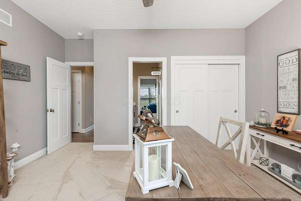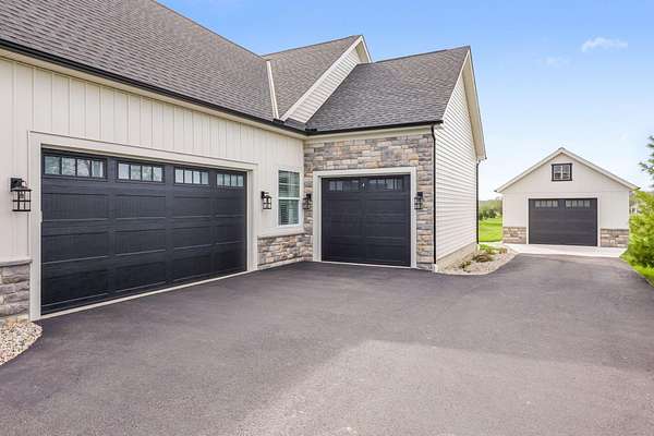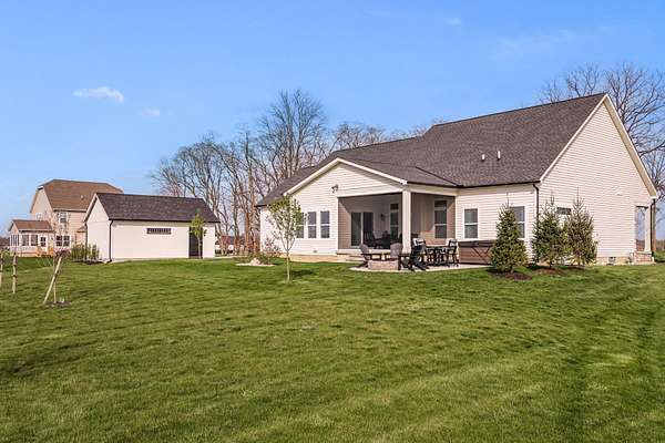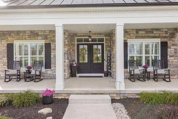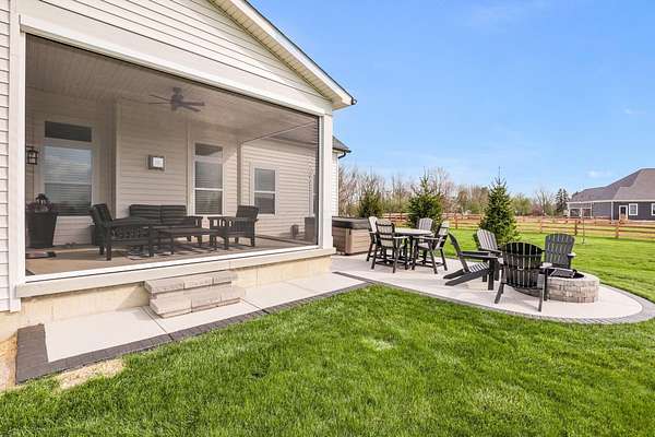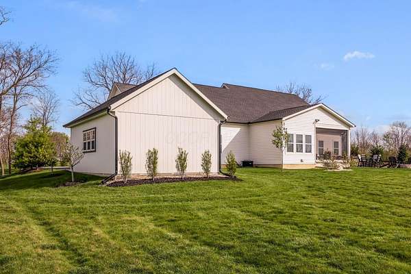 Welcome to this gorgeous, custom home located in Plain City with close proximity to Dublin, Hilliard, & Marysville (30 minutes to Downtown Columbus). This residence effortlessly blends luxury, comfort, and craftsmanship. Step inside to the open-concept floor plan that highlights a beautiful kitchen with stainless steel appliances, an oversized island with seating and quartz counters, casual dining area, and pantry. The main-floor Den offers double glass doors and decorative tray ceiling. The primary suite offers a decorative tray ceiling, a free-standing soaking tub, custom tiled shower, and convenient nearby laundry room. Two additional bedrooms on the main level feature a beautiful Jack and Jill bathroom. The finished lower level with egress window includes an extra living space ideal for entertaining or relaxing movie nights, bedroom, full bath, large walk-in closet, workout room and a beautiful kitchenette. Current owners have made significant upgrades including, 4th car garage, w/small loft area, a concrete patio with fire-pit, Hot Tub and beautiful landscaping, large covered front porch, and covered back porch that offers remote screens to easily convert to enclosed area, stylish window treatments, light fixtures and ceiling fans throughout the move-in ready home. Enjoy convenient proximity to Bridge Park, Downtown Dublin, OSU, parks with miles of scenic walking trails. This home combines the elegance of modern design with the warmth of everyday livability for a truly turnkey opportunity in a quiet country setting neighborhood. Welcome Home!
