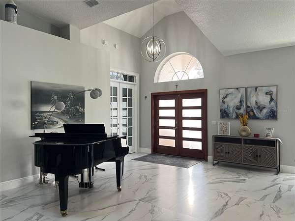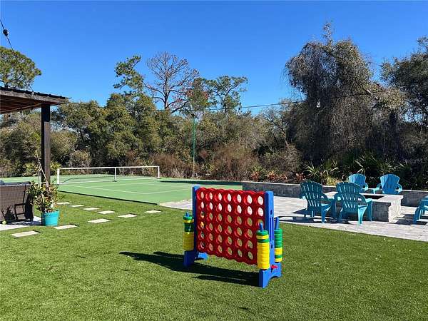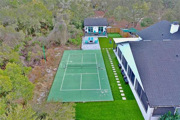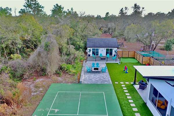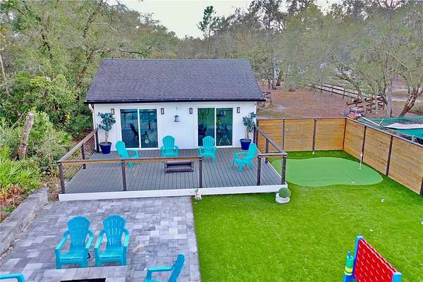 The RESORT-STYLE BACKYARD offers a screened COVERED PORCH, PICKLEBALL COURT, custom LANAI with OUTDOOR KITCHEN and BAR, FIRE PIT, MINI GOLF AREA, entertainment space, and high-quality artificial turf for year-round beauty. Between the main home and guest house is a private enclosed GYM with GARAGE ideal for a man cave. Also features amazing WATER VIEWS and a beautifully PAVED circular driveway with TWO ELECTRIC GATES, plus much more! The equestrian community features miles of SCENIC HORSE TRAILS, HIKING, is GUARD GATED and has an amazing PARK perfect for parties, family activities, BOATING, JET SKIING or just sitting on the sandy BEACH area to soak up the sun. The park area also features a PRIVATE SKI LAKE with a BOAT RAMP, DOCK, playground area, basketball court, bathrooms and a PARTY PAVILLION perfect for your special gatherings. Top-rated Seminole County schools and a convenient location just minutes from SR 417, shopping, UCF, Advent ER, St. Johns River boat ramps, and New Smyrna Beach! This home is the perfect blend of country style living, luxury and convenience! Schedule your private showing today!