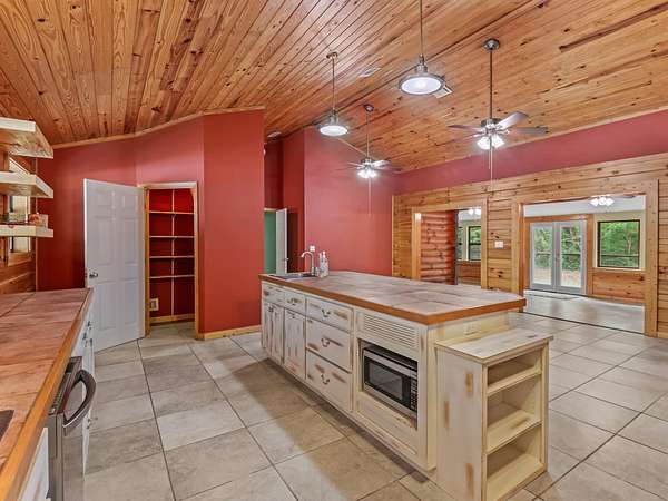 Nestled on over 17 acres this charming log home offers the perfect blend of rustic character and modern convenience. With 3 bedrooms and 2 bathrooms across 1,976 square feet this property provides a peaceful retreat surrounded by nature. Spacious well-appointed kitchen featuring a large island, premium Sub-Zero refrigerator and gas range ideal for both everyday living and entertaining. The open living areas are warm and inviting, highlighted by natural wood finishes and abundant light. A bright sunroom offers the perfect space to relax and enjoy serene views of the property year-round. Outside, the expansive acreage provides endless possibilities whether for recreation, gardening or simply enjoying privacy. The home also includes a 2-car carport with an attached storage shed plus the added peace of mind of a whole-house Generac generator. A rare opportunity to own a private slice of countryside living with thoughtful upgrades and timeless appeal