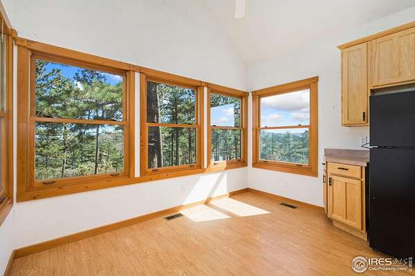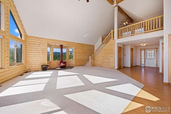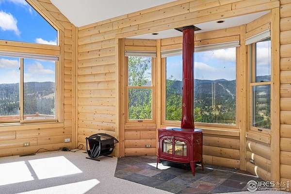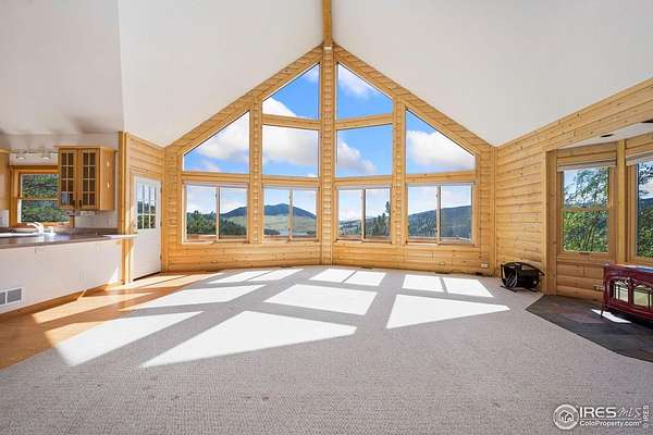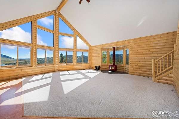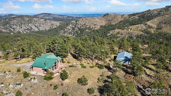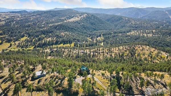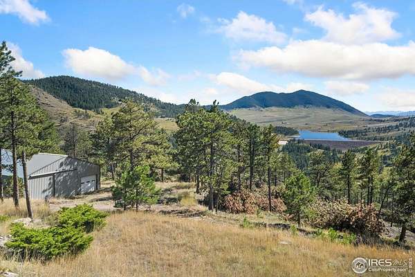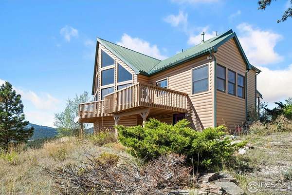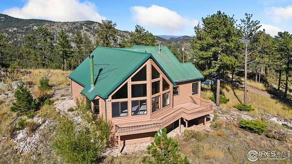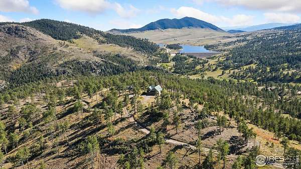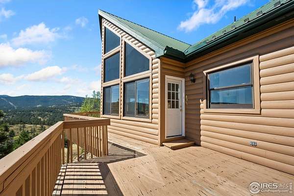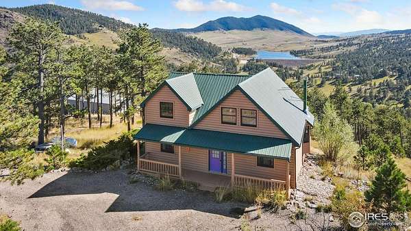 Ready to own your slice of beautiful Colorado? Welcome to 965 Stone Mountain Ranch Rd, a private mountaintop retreat perched on over 48 acres with sweeping views of Pinewood Reservoir and the Front Range. This beautifully crafted cabin blends rustic charm with modern comfort, featuring a durable metal roof, floor-to-ceiling windows, a wraparound deck, and endless serenity. Enjoy main floor living with two bedrooms, a spacious kitchen, and a bright, airy living area. The spacious loft can easily convert to a third bedroom with an ensuite. Just steps away from the home, a massive 1,900+ sq ft outbuilding provides space for cars, campers, and all your mountain toys. Step outside to newly fire-mitigated grounds, a water feature, and multiple sitting areas where wildlife and breathtaking sunsets are your neighbors. Just minutes from hiking, boating, and camping, yet still a convenient drive to town, this home offers the perfect balance of adventure and everyday life. It is truly Colorado living at its finest. Schedule your showing today! Please note, the property is on a private road, please do not drive by without an appointment.