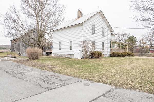 965 US Highway 11 in Gouverneur is a 73.5 acre property complete with a barn, former fully operational greenhouse called "Plant City", and a lovely 4 bedroom, 1 bathroom home. As you pull in the driveway to the home you are greeted with a new wrap around porch that leads to a side door into the kitchen. This open space includes plenty of cabinets, built in storage and space for a table. To your right is a "mud-room"/pantry great for storage! Also off the kitchen is the dedicate laundry room. The living room offers plenty of natural light, space for a dining table and all the original woodwork on the doors and windows. The first floor is also comprised of a cozy office space, a full bathroom and a first floor bedroom! Upstairs you will find three remodeled bedrooms with closets, original woodwork, freshly painted walls and new carpeting in the fourth bedroom. The property also includes a metal roof, a brand new propane furnace from Bush Fuels, municipal sewer and access to municipal water (currently on a well.) Outside you will find a large barn that with a little TLC would be a great place for animals, a former greenhouse with the building and greenhouse poles. One of the best features of this property is the 73.5 acres of land! This expansive property includes tillable acres and a wood lot complete with a sugar bush and a sugar bush on the backside of the property. All of this land makes the possibilities here endless! This home has been lovingly cared for by the same family for decades. Don't miss such a rare opportunity to own a large piece of the North Country! Schedule your private tour today!