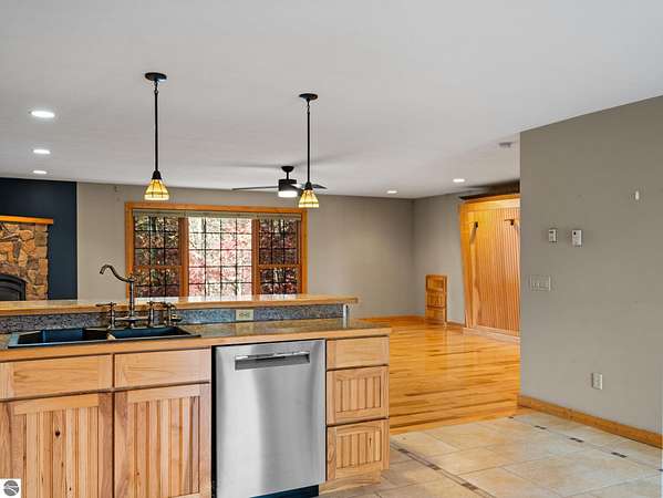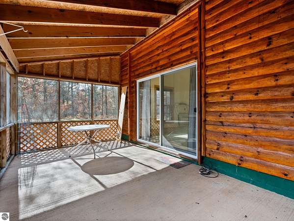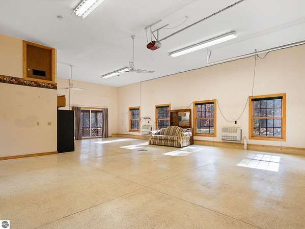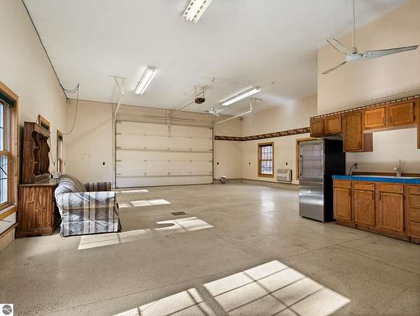 Tucked away on 1.6 peaceful acres just off US-131, this unique Northern Michigan property blends privacy, functionality, and opportunity. The fully finished lower level features a two-car garage/workshop with 15-foot ceilings, ceiling fans, custom aluminum blinds, epoxy flooring, large overhead doors, a 3/4 bath, and a kitchenette, making it ideal for a guest suite, small apartment, or creative studio space. Upstairs, the open and light-filled studio living area is both warm and efficient. The kitchen showcases custom Amish hickory cabinets, built-in hickory drawers, granite countertops, and tile flooring, complemented by a cozy stone gas fireplace and hickory floors in the living area. Custom cloth blinds add a tailored touch throughout, while the 3-season sunroom and walk-up wooden deck invite you to enjoy the surrounding hardwoods year-round. Recent updates ensure peace of mind and modern comfort, including all new appliances (2025)--with a new garbage disposal, new hot water tank (2025), new boiler (2022), and septic serviced in 2024. A Starlink internet kit is also available, offering reliable connectivity for remote work or streaming. Outdoors, mature hardwoods provide natural shade and beauty, creating a tranquil backdrop for both relaxation and recreation. Located just 10 minutes from Fife Lake and 12 minutes from Manton, this home offers easy access to upstate and downstate routes via US-131. Whether you're seeking full-time living, multi-use flexibility, or a balance of work and leisure, this property offers endless possibilities in a serene Northern Michigan setting.