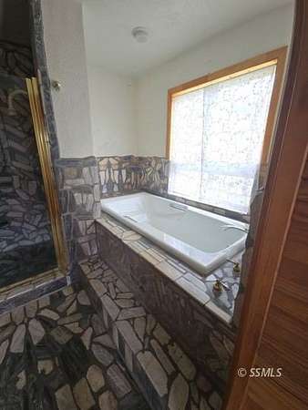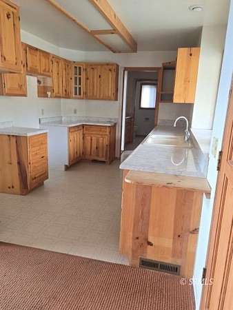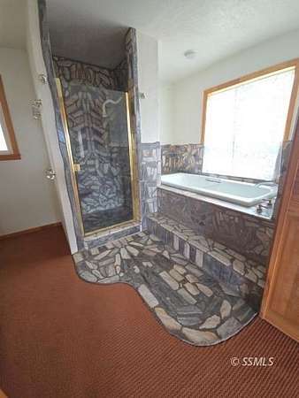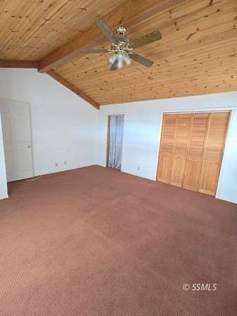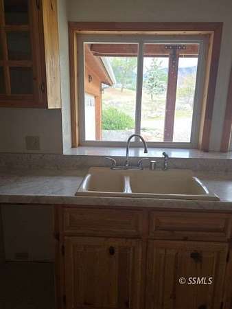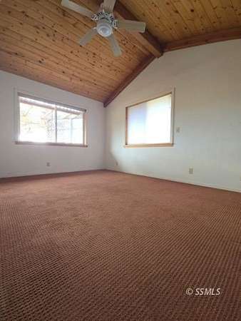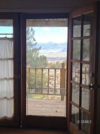 Set on 2.5 acres, this 2-bedroom, 2-bath home offers a peaceful retreat designed for relaxation and enjoyment of its natural surroundings. Expansive mountain views can be appreciated from nearly every angle of the home, including the living room, dining area, and through the French doors in the primary bedroom. The primary suite features a thoughtfully designed bathroom with custom rock work and elegant gold accents, creating a distinctive, designer feel. A well-appointed second bedroom provides comfortable accommodations for guests, with a nearby bathroom for convenience. The kitchen is efficiently laid out for ease of use and offers scenic views from the window, making everyday tasks more enjoyable. A deck spanning the length of the home provides an ideal space for outdoor entertaining, relaxing, or simply taking in the serene setting. With a well and a location removed from the bustle of town, this property offers the perfect balance of comfort, and natural beauty.
