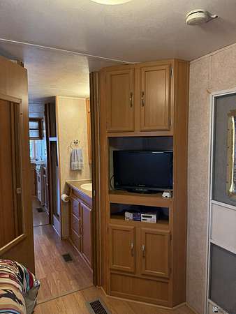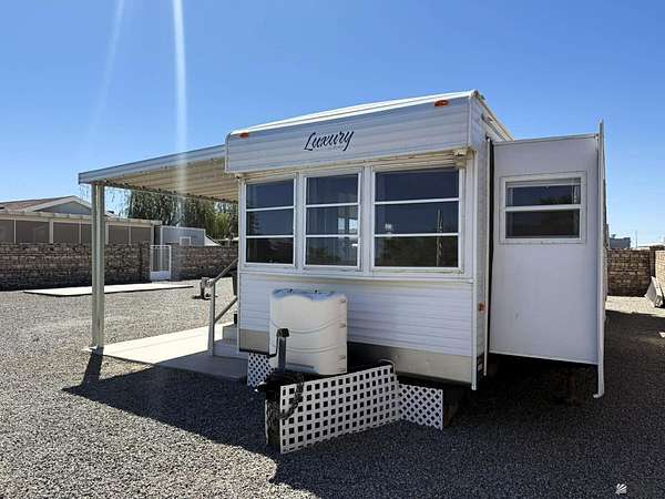 Unlock incredible potential with this 7,096-square-foot lot, offering significantly more space and versatility than the standard parcels in the area. This ready-to-use property features an RV pad equipped with two full 50-amp hookups, making it an ideal setup for hosting guests or generating immediate income as a dual-unit rental property. Centered on the lot is a well-maintained updated 2008 travel trailer providing 312 square feet of comfortable living space, recently upgraded with newer flooring in the bathroom and a sturdy newer back step for easy access. To ensure year-round comfort in any climate, the travel trailer is powered by a 3-ton A/C unit, has a washing machine and ample storage space. The grounds also include a functional storage shed that is fully wired with power, perfect for a workshop, hobby room, or secure equipment storage. Whether you are looking for a turnkey vacation spot, a savvy investment opportunity, or a spacious home base for your nomadic lifestyle, this unique property offers the infrastructure and extra space to make it happen.