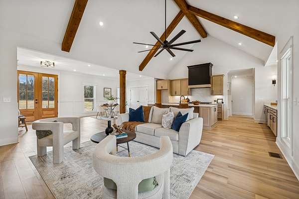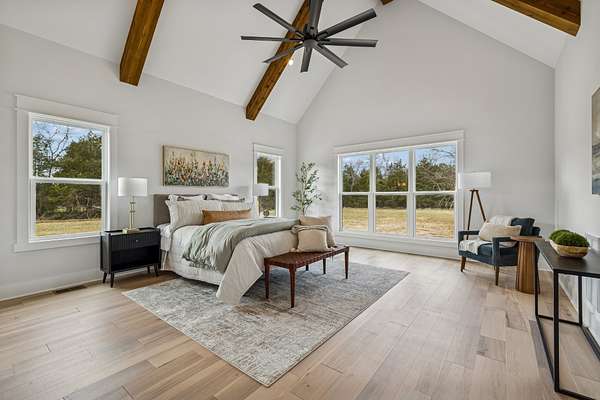 Experience the absolute perfect blend of luxury and country living in this stunning new construction by Simmons Builders, set on 5.13 acres of scenic Tennessee countryside. This spacious custom-built home showcases high-end finishes throughout, including rich hardwood floors, exposed cedar beams, and a gas fireplace accented by a stone mantle. The chef’s kitchen is designed to impress, with a custom gas stove hood and sleek counters, soft close cabinets, black fixtures, and the walk-in pantry you’ve been dreaming about. The primary suite offers the space, comfort, and style of a true relaxing retreat, with vaulted ceilings with warm wood beams, a huge double vanity, free standing tub, separate tile shower, and a walk-in closet. Two more bedrooms share another full bath downstairs, while guests have a convenient powder bath. Upstairs, you’ll find two more bedrooms, another full bath, and gorgeous media room with so much flexible space. Additional features include a large three-car garage, a convenient mudroom with built-ins, and inviting covered porches on both the front and back - perfect for taking in the peaceful surroundings. Make this luxury Tennessee home on countryside acreage your dream property today! Up to $10,000 paid towards Buyer’s Closing Cost - Contact listing agent for lender contact info and details.