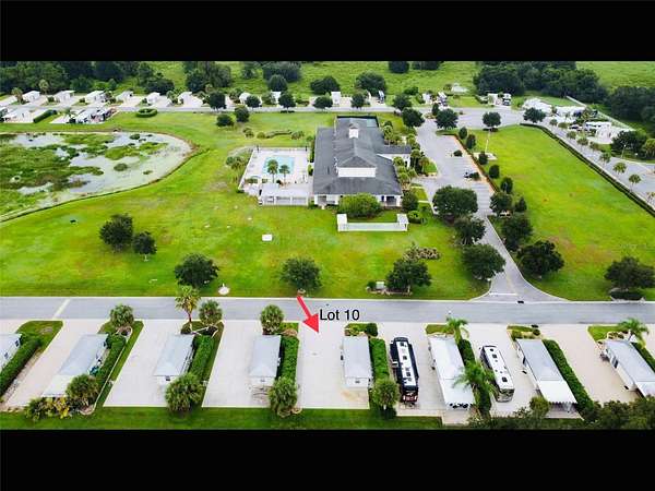 Welcome to your paradise at Florida Grande Motor Coach Resort--an exclusive gated haven for Class A and Super C motorhomes! This exceptional Lot 10 boasts stunning views of the expansive 20,000 sq ft clubhouse and shimmering pool in the front, while the back offers tranquil pasture views where friendly cows often come up to the fence for a visit. The prime back-in lot is east-facing, ensuring warm, sunny mornings on your 26x76 concrete pad, complete with full hookups and additional pavers for convenience. Inside, the charming Grande Suite spans 384 sq ft and features elegant crown molding and tile flooring throughout, providing a stylish retreat that comes partially furnished. The beautifully designed kitchenette includes beautiful wood cabinets, a full-size refrigerator, and a microwave, while a spacious full bath and a handy storage area with a washer/dryer add to the suite's practicality. With serene views in both directions, this property is a tranquil retreat. Located just an hour from the excitement of Tampa, Orlando, and Ocala, it's the perfect spot for unforgettable Central Florida day trips. If you prefer to stay closer to home, spend your days relaxing by the pool, challenging friends to a game of pickleball, or enjoying a lively card game. Join in a line dancing class or explore a new craft project! The community welcomes you with open arms. At just $995 per quarter, the HOA dues cover incredible amenities including water, sewer, trash, mowing, irrigation, a dog park, and all clubhouse facilities. Plus, you're welcome to bring two pets! This all-ages community is truly special, offering a unique lifestyle in an ideal location. Don't wait--your dream retreat is calling! Contact us today to schedule a tour and make this paradise your own!