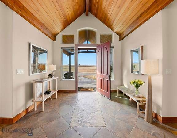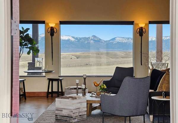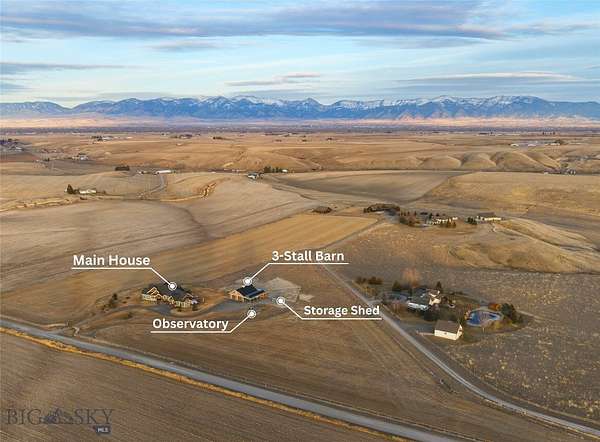 A masterpiece of sustainable design, this exceptional, gated estate redefines sophisticated Western living. Envisioned for the connoisseur of quiet opulence, the residence seamlessly integrates state-of-the-art geothermal and a comprehensive solar array, culminating in an astonishing operational cost of approximately $60 per annum. Commanding the landscape from 20 private acres, the property offers uninterrupted 360-degree panoramas of the Bridger Mountains, Horseshoe Hills, Tobacco Root, and Gallatin Ranges. Every aspect of this sanctuary exudes refined elegance, blending rustic textures with modern functionality and premium finishes. For the equestrian, a beautifully appointed 3-stall barn with auto waterers, wash facility, tack room, 60ft arena, and 2 fenced pastures with dry lots await. The discerning amateur astronomer will appreciate the private observatory with Meade 12in RCX goto telescope, location offering pristine, dark skies. Inside, discover an open-concept, 4B|4B single-level layout featuring a chef's kitchen with double sinks, double ovens, abundant storage with large walk-in pantry, highly efficient gas fireplace, luxury primary suite with his and hers vanities, radiant heat, AC, a dedicated theater room with stadium seating, a professional subterranean heated and cooled greenhouse and workshop. The expansive covered patio overlooks a backyard oasis with irrigated landscape beds and lawns, a garden, and a custom gas fire pit, capturing some of the most commanding mountain vistas in the region. Located near 2 world-class fly fishing rivers, Bozeman, Big Sky, and Yellowstone International Airport. Additional amenities include a security camera system, quad insulated windows with UV block, newer 50year roof, newly upgraded well pump system, Generac generator, and the ability to subdivide. NO HOA. MINIMAL Covenants. This is more than a home; it is an experience of unparalleled quality, privacy and bespoke tranquility."