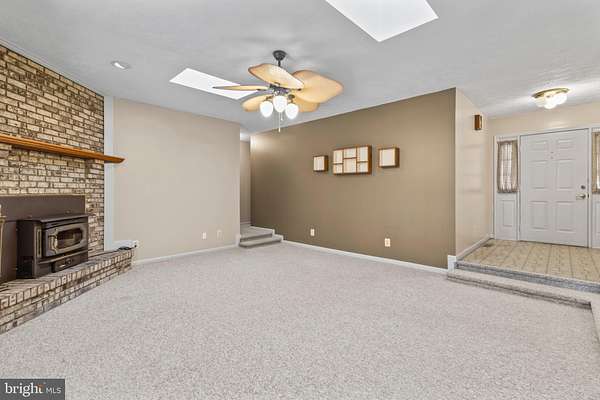 - Attic, Breakfast Area, Carpet, Ceiling Fan(s), Eat-In Kitchen, Entry Level Bedroom, Family Room Off Kitchen, Island Kitchen, Jetted Tub Bathroom, Recessed Lighting, Skylight(s), Traditional Floor Plan, Wood Stove
