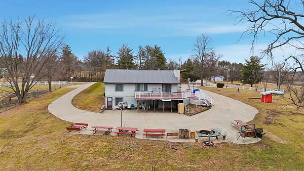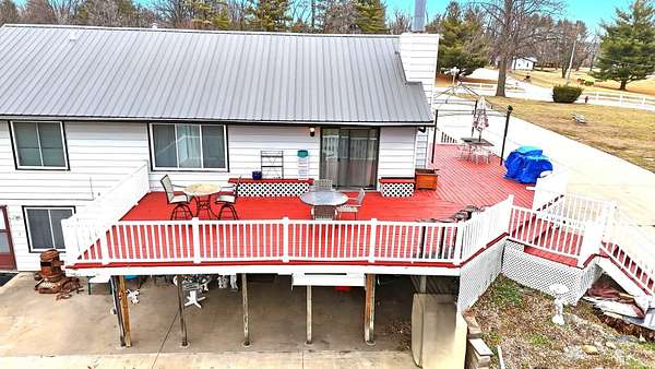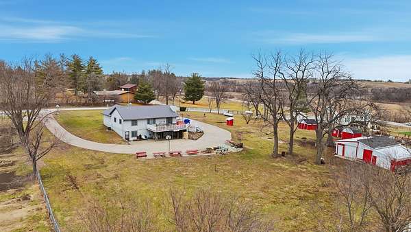 Location! This unique acreage offers breathtaking views from its hilltop perch and unmatched convenience. Situated in the Indianola School District right off Hwy R63, you're less than 15 minutes from the airport and only 5 minutes from the Des Moines Bypass. The home is packed with potential and major upgrades, including a newer metal roof, updated windows, a remodeled kitchen, and a primary ensuite with a brand-new step-in shower. Outside, the extra-wide cement driveway leads to a massive wrap-around patio designed for perfect drainage, while the expansive deck and gazebo provide the ultimate vantage point for those amazing views. Inside, the main level features beautiful hardwood flooring and three spacious bedrooms. The kitchen and dining areas open directly to the deck for seamless entertaining. The lower level is a massive bonus space, featuring a huge family room, a potential theater room, a fourth bedroom with an adjacent bath, and a laundry/storage area. With numerous well-maintained outbuildings, fenced areas, and exterior electric hookups ready for multiple motorhomes or campers, this property is a rare find!