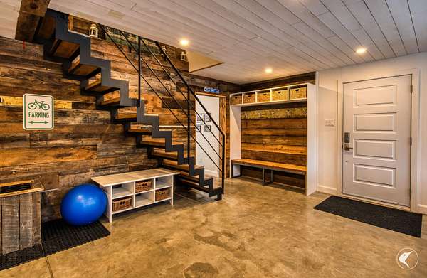 - Beamed Ceilings, Bookcases, Built-In Features, Eat-In Kitchen, Entrance Foyer, High Ceilings, Jetted Tub, Kitchen Island, Natural Woodwork, Open Floorplan, Recessed Lighting, Stone Counters, Vaulted Ceiling(s)
