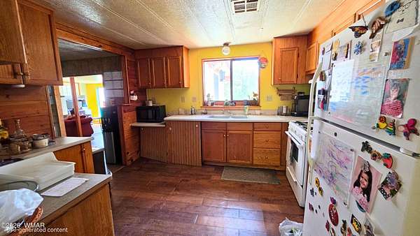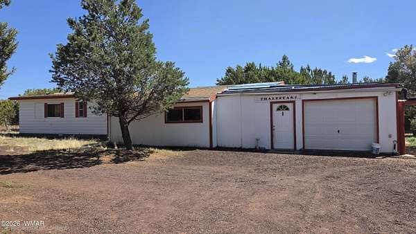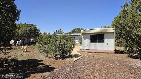 Set on 3 level acres in Vernon, this 1,536 sq ft double-wide with 532 sq ft of add-ons offers space, privacy, and versatility. The property is fully fenced with a gated entrance and includes water through Cedar Grove, power, septic, an attached 1-car garage, a 12*36 single-wide ready for conversion, plus a 27-ft pull trailer. Add-ons include a den/study (or potential extra bedroom) and an Arizona room, along with a 520 sq ft A-frame storage shed. Tenants will be out by May 1st. The land is surrounded by natural pinon pine and juniper, giving the property a classic Vernon landscape with open views toward the White Mountains. The level terrain is ideal for expansion, homesteading, or multi-structure living. Paved roads provide reliable year-round access, and the full fencing makes it perfect for pets, livestock, or equipment. Located just minutes from Show Low, Vernon offers the ideal blend of rural quiet and convenience. Enjoy cooler summers, four-season weather, and wide-open skies while staying close to shopping, dining, medical services, and recreation throughout the White Mountains. With multiple structures, utilities already installed, and owner will carry terms available, this property delivers flexibility, usability, and opportunity in one of the most accessible areas of the White Mountains.