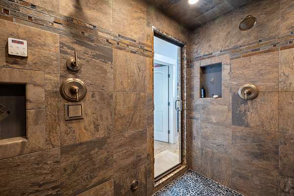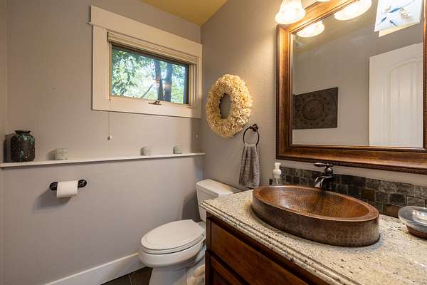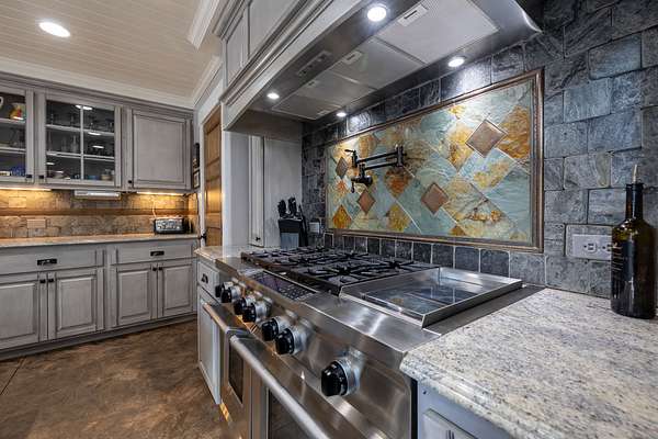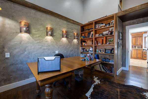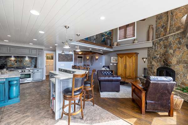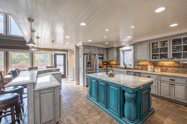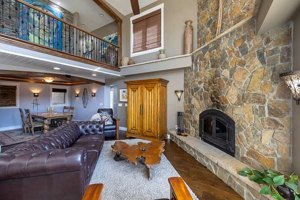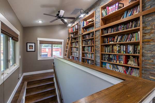 Originally built in 1990, this 4 bedroom 4 bath home was remodeled in 2012 and is filled with character and class. The kitchen boasts granite countertops, sleek stainless steel appliances, a large chef's gas stovetop and is all tied together with slate backsplash. The open floor plan between the kitchen and family room provides a cozy space for hosting guests, and has a two story stone fireplace as well as a wall lined with windows giving you great views to the outdoors. Moving upstairs you will find the 4 bedrooms as well as two flex rooms, one of which is being used as an office and the other as a dedicated theater room. Take the back stairway up to the master bedroom suite, and you'll pass by the beautiful library wall encased in slate, complete with a library ladder. The master bedroom/bathroom is a dream with a full walk-in closet, large double vanity, incredible walk-in shower, small workout room, and relaxing balcony with a view of the creek bottom and rock outcroppings. The two laundry rooms are located both upstairs and downstairs for convenience. Front and back walled courtyards provide serene areas to enjoy the views and the peace. Furthermore, a hot tub sits on the backside of the home and is a perfect spot to relax and take in the night sky. A new roof and windows were installed on the house in November of 2025 making it move in ready. This house truly is one of a kind.