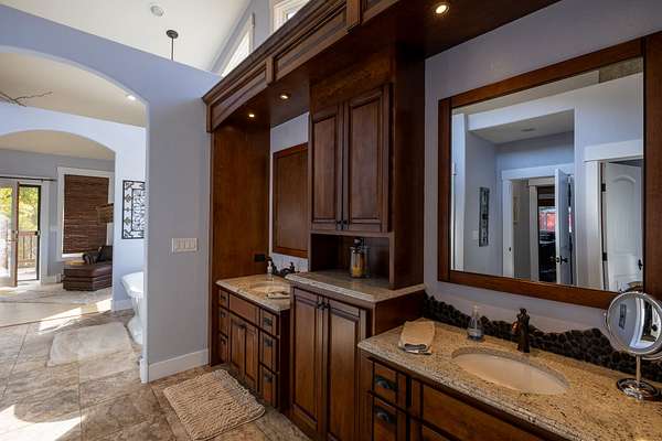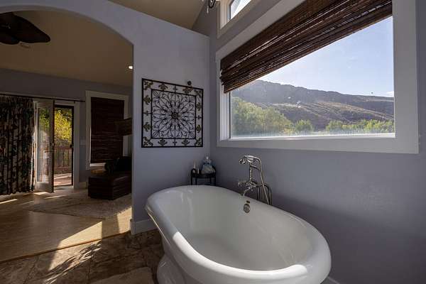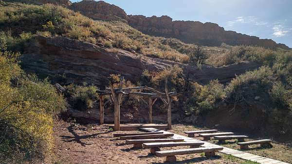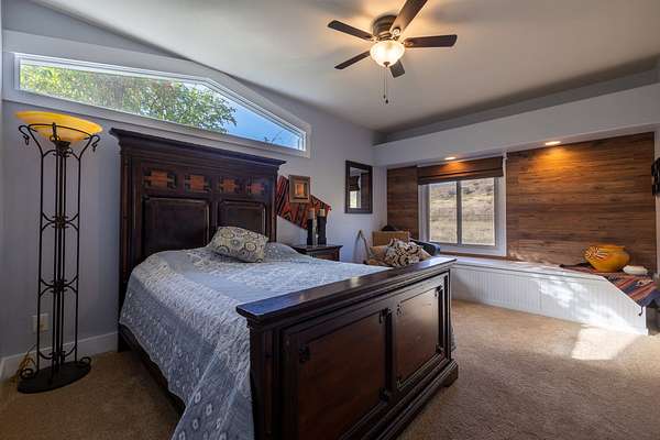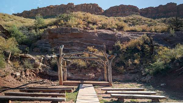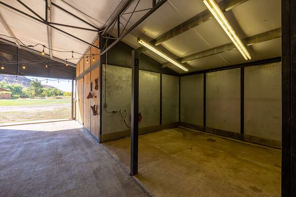 Finally, taking a trip across the creek brings you to one of the most unique spots on the property. Built into the side of the magnificent red rocks is a wood pergola and seating area. The owners have used this natural amphitheater area for wedding ceremonies, musical venues and outdoor educational gatherings. The property carries an Open zoning status, so with the venue ideas, the equestrian facilities and the apartment, it is ideal for multiple revenue opportunities.