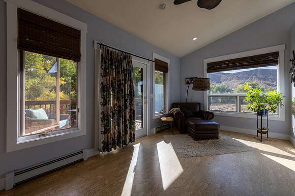 Perched on the scenic backside of Horsetooth Reservoir, Jubilation Ranch offers the perfect blend of rural serenity and urban convenience. Enjoy the peaceful ambiance of country living while remaining just minutes from the convenient amenities of Fort Collins and Loveland. The surrounding area is a haven for outdoor enthusiasts, with premier hiking and trail-riding opportunities at Horsetooth Mountain Open Space, Lory State Park, and Bobcat Ridge, all within close proximity. Redstone Creek, a seasonal waterway, enhances the property's allure, flowing from early spring through late summer, depending on weather conditions. The creek is framed by mature cottonwood trees, which provide refreshing shade, a sense of seclusion, and breathtaking seasonal displays, particularly in autumn when the foliage transforms into vibrant colors.