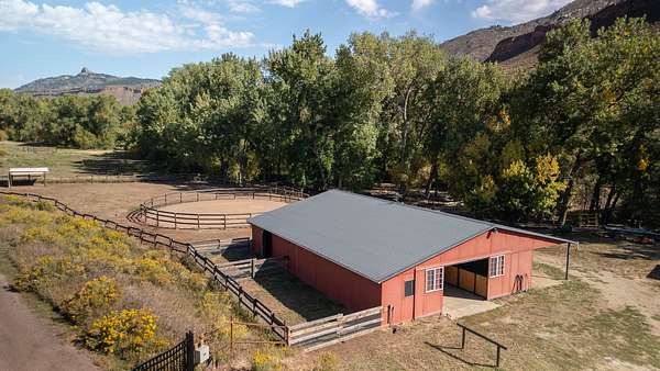 Nestled just outside Fort Collins, Jubilation Ranch is an exquisite 35 acre gated estate that epitomizes luxury and tranquility. This exceptional property is zoned open and boasts a stunning 3,312 square foot home, a top of the line six stall barn, multiple riding arenas, a spacious workshop with a live-in loft apartment, and a natural red rock theater. All of this sits on the bank of the beautiful Redstone Creek as it flows through the property.
