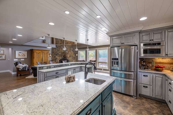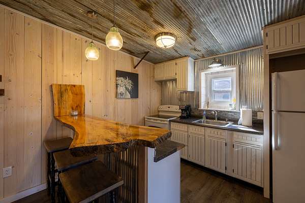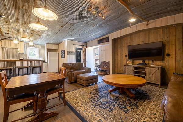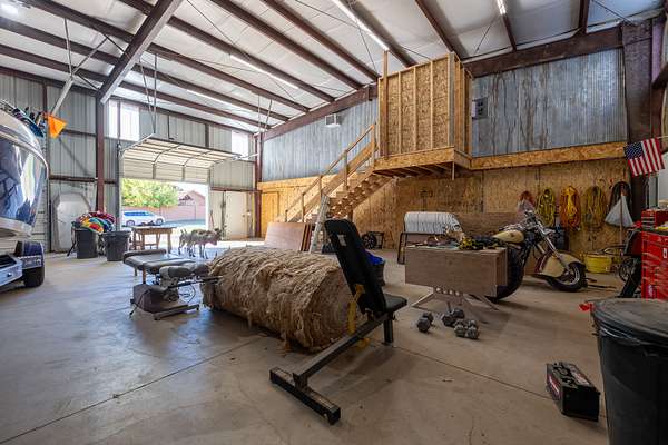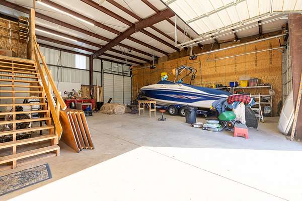 The 44x60 workshop built in 2015 gives tons of space to store vehicles, boats, ATVs, and other toys, as well as ample room for a full fledged workspace and 900 square feet of dedicated enclosed storage space. It has 16 foot tall pull-through garage doors which is perfect for RVs. It also comes with a compressor housed in a small addition on the north side that provides compressed air to various spots around the shop. Above the storage area is the 1 bed 1 bath 880 square foot loft apartment that has been tastefully finished with rustic farm-style accents. It comes complete with its own kitchen and bathroom and is fully live-in ready.