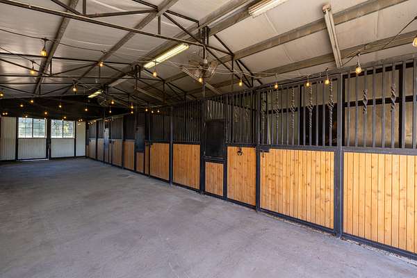 The barn was built in 2002 and is in exceptional condition. Fully decked out with 6 stalls, a tack room, an indoor wash bay with hot water for happy horse baths, 3 automatic waterers, electricity etc - this barn leaves nothing to be desired. Your animals will be at home here. Backing up to the barn is a large enclosed turn out pen with a round pen inside. Across the creek is a developed obstacle course for training. Take a ride to the other side of the house and you'll find the 70x150 sand riding arena. While cross fencing creates different pastures for rotation, the entire property is perimeter fenced with an automatic estate gate for entry, keeping the horses secure at all times. With all of the proper amenities already in place, this is a great setup for boarding horses and could be a way to generate additional income. Your dogs will also love the property with its half-acre of "invisible" fenced area around the home.