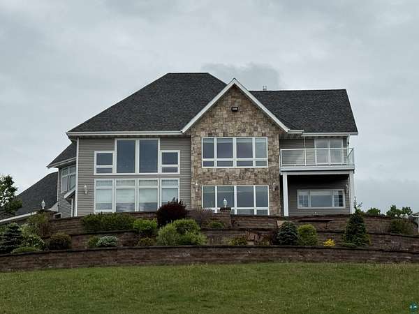 AMAZING views of Lake Superior! Panoramic views both up the shore and down the shore. When you pull into the driveway, the house is commanding as it sits up top of the hill and large retaining walls and patio's encompass the house. It is beautiful! Walk into the foyer with tall ceilings, wrought iron decorative stairway, office space in one or two different spots. Walk into the main area of the house and you have floor to ceiling windows in both the dining room and living room. Granite counter tops with double ovens, dishwasher, center island, trash compactor, pantry and tons of counter space. A dream kitchen to cook in and watch the ore boats. Upstairs there is a primary bedroom with a steam shower room, corner tub, double walk in closets, fireplace and spectacular views from inside or out on your deck. This home has an enormous amount of storage, electric car charger, heated floors, forced air heat and air conditioning. There is an attached 3 car garage with doors to the patio, Pole building that is 40 x 100, inside the poled building there is a 20x30 area that is enclosed, insulated and heated, car lift is negotiable. This home has everything you could ever want and one of the best views I have ever seen. Upper Windows replaced with Anderson Renewals in April 2025. New Kitchen/Dining room flooring installed April 2025. Pictures do not reflect the new flooring or windows.