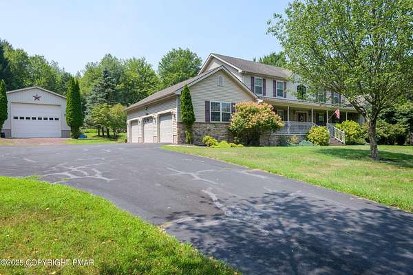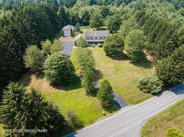 Custom designed & built stately home on almost 2 acres. Home is spacious & located on a private setting. House offers 5 large bedrooms with ample closet space & 4 full baths. Full walk out basement ready to be finished. Large living & dining rooms are great for entertaining or a growing family. Eat in kitchen has maple cabinets, granite counter tops & sliders to rear deck. Propane fireplace in living room. Separate home office on main living area. Gigantic primary suite with sitting area, his & her walk in closets, Jacuzzi tub & shower on first floor. Laundry room with storage & mud sink. 3 zoned HVAC system. Custom blinds throughout. Surround sound. Built in window candles, toe kick for central vac & intercom system. Trex deck off kitchen & cement front covered porch. Fenced in 38' x 16' built in pool surrounded by paver patio & extensive landscaping. Whole house generator, alarm & radon systems already installed. Paved circular driveway & mature landscaping. 3 car attached garage & 48' x 28' pole barn perfect for boats, antique cars or RV's. 1000 gallon buried propane tank is owned. Commuter location. About 10-15 min to turnpike, minutes to shopping & less than 3 miles Beltzville Dam. Schedule your showing today! Motivated seller!