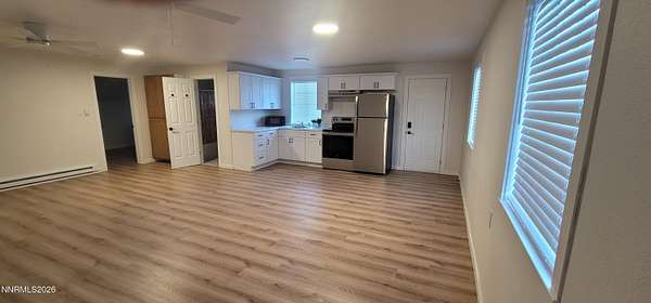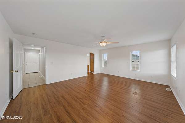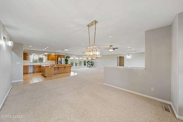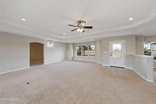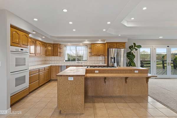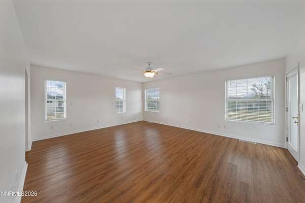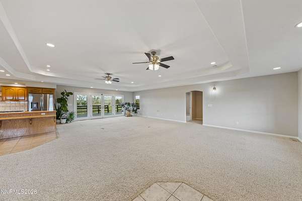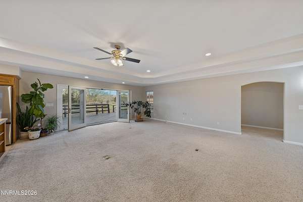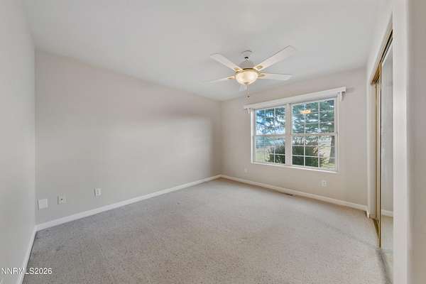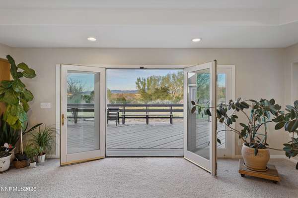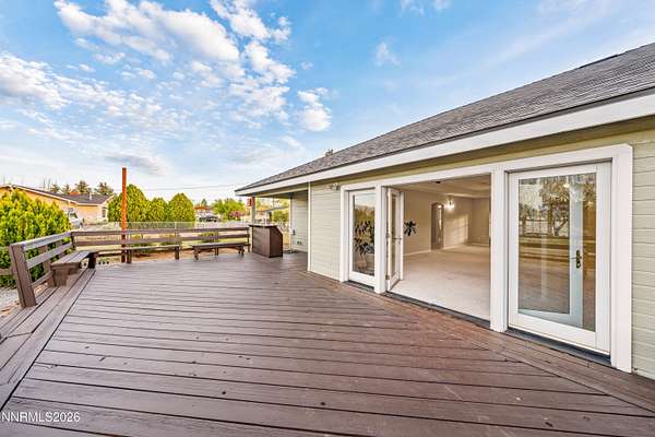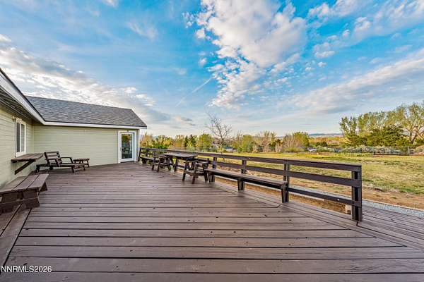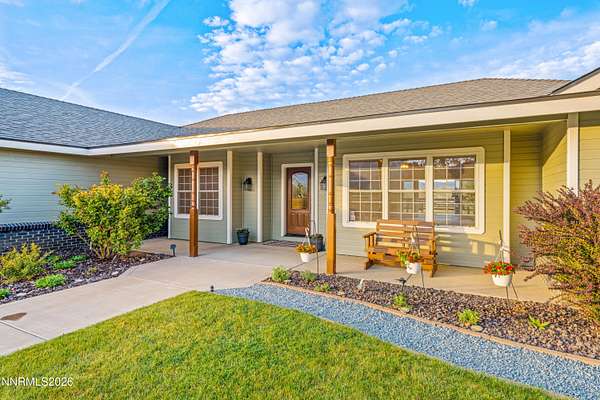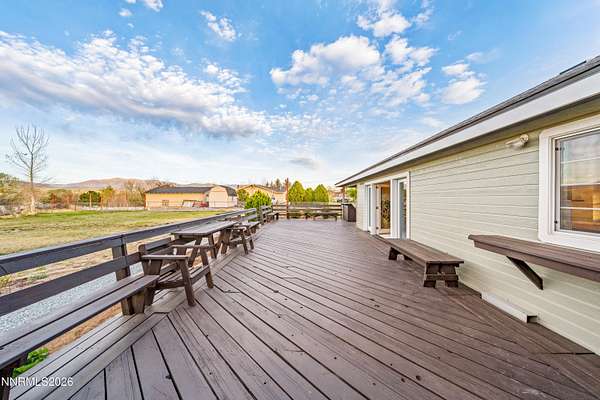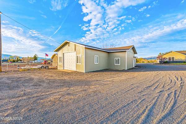 Welcome to this stunning 3-bedroom, 2-bathroom home, perfectly situated on a private 2.1-acre parcel with breathtaking, unobstructed views of the Sierra Nevada mountains to the west and the rugged Pinenut Mountains to the east. From almost every window and the expansive rear deck, the panoramic vistas stretch for miles-snow-capped peaks in winter, golden sunsets year-round, and endless high-desert skies that make every day feel like a getaway.The home itself features a thoughtful split-floor-plan layout that balances privacy and openness. The generously sized primary suite sits on one side of the house, while the two secondary bedrooms and guest bath occupy the opposite wing, giving everyone their own space. Inside, the open-concept great room flows seamlessly from a bright, light-filled kitchen with abundant counter space and breakfast bar into the spacious living and dining areas. Interior has tons of natural light, highlighting the fresh, neutral paint throughout-inside and out-that makes the home feel brand new. Open floorplan and wide hallways add to the airy, welcoming feel. Step outside onto the massive deck (nearly 500 sq ft) that overlooks the mountains and backyard. It's the ultimate entertaining space, complete with room for a full outdoor kitchen, making it perfect for evening gatherings. Mature landscaping surrounds the property with established trees, low-maintenance xeriscape, colorful perennials, and a gentle lawn area-creating a park-like setting that's both beautiful and easy to maintain.Additional highlights include a brand-new 30-year composite roof on the main home, ensuring peace of mind for decades to come. A large shop building featuring a massive 40-foot RV bay with a 12-foot overhead door-perfect for storing your motorhome, boat, or multiple vehicles. The shop also includes, oversized workbench area, and plenty of storage, making it ideal for hobbies, business, or simply keeping your toys protected.Best of all, the property includes a separate ADU (Accessory Dwelling Unit) that adds over 1,000 sq ft of bonus living space not counted in the main home's square footage. This fully self-contained unit features its own kitchen, full bathroom, living area, and private entrance-perfect for extended family, guests, rental income, or a home office with mountain views.With fresh paint, a new roof, mature landscaping, and those jaw-dropping mountain views from every angle, this home offers the perfect blend of modern comfort, privacy, and endless outdoor lifestyle potential. It's move-in ready and waiting for you to start making memories.