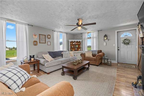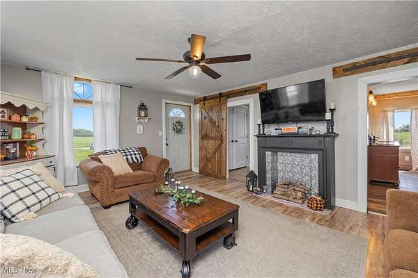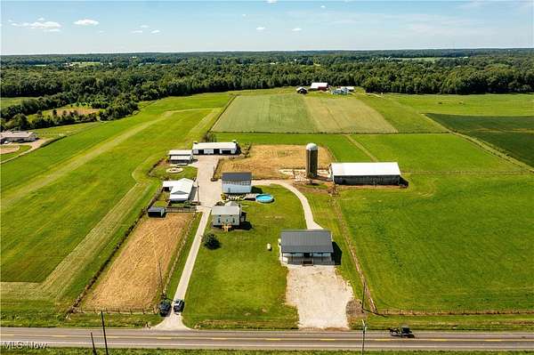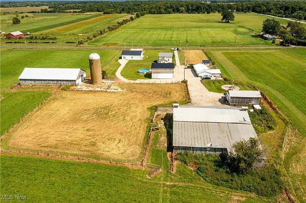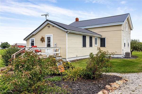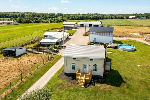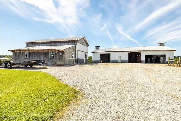 Discover over 11 acres of versatile countryside living with this well-maintained property offering endless possibilities. The 3-bedroom, 2-bath farmhouse includes a first-floor master suite, convenient first-floor laundry, and ample living space. The land is set up for a variety of uses with fenced pastures ideal for livestock or hobby farming, multiple barns, and a newer outbuilding (with electric & hvac!) with its own separate entrance from the road-perfect for a small business, farm store, or workshop. All barns have well water. Whether you're looking to expand into agriculture, run a business from home, or simply enjoy wide open spaces, this property delivers both opportunity and rural charm. New Roof 2020, New furnace 2022, New A/C 2023. HWT 2018. Updated Electric. Heated Garage with bathroom - great entertaining space. Call today to tour this fantastic property!