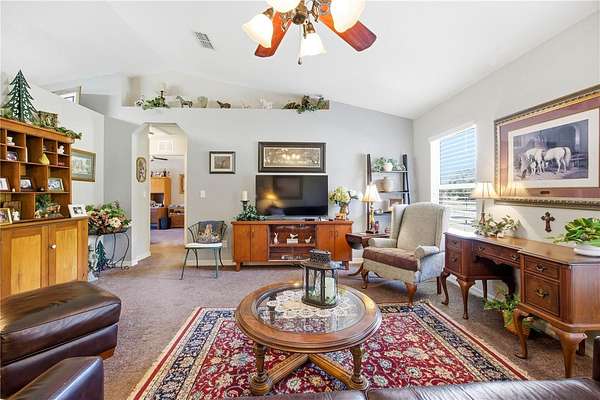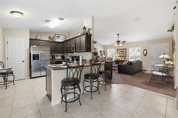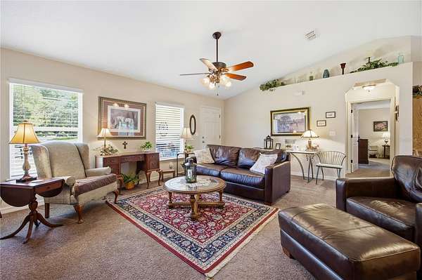 Ocala horse country living at its finest - where thoughtful design meets a turnkey equestrian lifestyle. This meticulously maintained 3-bedroom, 2-bath split plan home offers a seamless blend of comfort and functionality. The well-appointed kitchen features stainless steel appliances, a charming bay window, breakfast bar, pantry and a spacious dining area that flows effortlessly into the main living space. The primary suite is a true retreat with a spacious vanity and a beautifully tiled walk-in shower. Generously sized spare bedrooms add to the appeal of this split bedroom plan. Additional highlights include an inside laundry room and a whole-home water softener for added convenience. Step outside and take in the setting - your front porch overlooks a picturesque paddock shaded by a granddaddy oak, delivering that classic Ocala backdrop. Equestrian amenities are dialed in with a center aisle barn featuring two 12x12 stalls, a wide, functional aisle, excellent airflow, and infrastructure already in place to easily add additional stalls. Two well-situated paddocks offer space and flexibility, with room to expand to a third paddock or incorporate a round pen and so many other possibilities. The back porch provides a clear line of sight to the barn and rear paddocks - ideal for both daily function and simply enjoying the lifestyle this property offers. Meticulously maintained from the home to the barn, this property is ideally located with convenient access to WEC, Ocala and Gainesville - offering the best of country living with everyday convenience. This property is truly a must see!