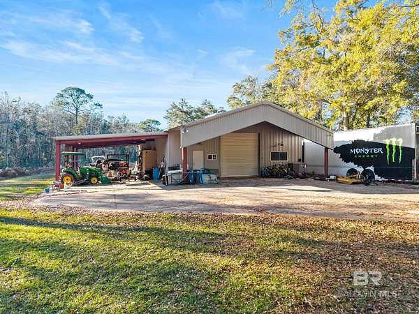The wait is over!!! Looking for the perfect Fairhope home with acreage???!!!?? Look no further, this property has it all. Perfectly thought out 4400 sqft with 4 beds and 4 bathrooms, 2 dens, 2 fireplaces, and much, much more. The massive wrap-around porch on the front leads you into the foyer and a cozy den with a fireplace. Through the foyer, you are led into the main den with a huge wood-burning (gas starter) fireplace. The living space in this home is perfectly thought out and ideal for cozy nights by the fire or entertaining. In addition, there is a huge bonus room that has endless possibilities. But it does not stop at the home; this property also has a 40x60 shop with a lean-to on the side. The shop is insulated, heated, and cooled. This is the perfect place to store all your equipment and toys. Speaking of toys, bring your ATVs, UTVs, dirt bikes, or side-by-sides, because there is an incredible dirt track to play on. THERE IS MORE!! The home also includes a heated and chilled screened-in saltwater pool. Make this 32-acre estate yours and schedule your tour today!! Buyer to verify all information during due diligence.