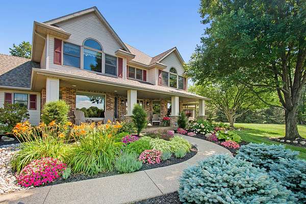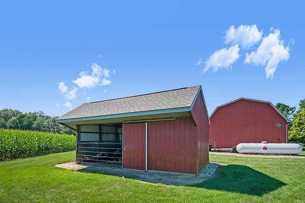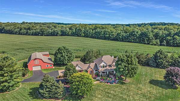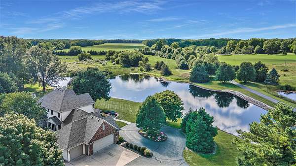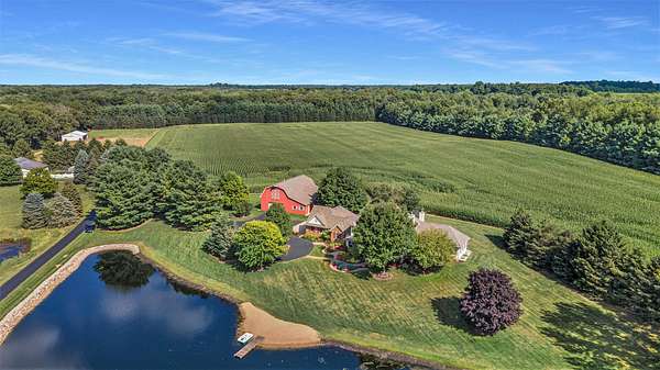 PARADISE FOUND! This 42+ Acre Estate offers everything to make your dreams come true. Conveniently located; 20 min. to Stryker, 17 to Pfizer, 14 to Eaton, 24 to Downtown Kalamazoo, 27 to Downtown Battle Creek. Drive down the winding asphalt 1/4 mile driveway to arrive at this beautiful property. Complete w/ a swimmable spring fed pond that has 3 aerators and is stocked with bass and bluegill. This home was custom built to overlook the peaceful waterfront. Gorgeous professional landscaping by Murray Landscaping, underground sprinklers & landscape lighting showcase this beautiful estate. Enjoy water views from the inviting covered porch or the comfortable screened porch. Home is very well built w/ solid Oak doors & trim & plaster walls throughout. Sound system w/ speakers on main level. Kitchen has been updated w/ Granite counters. Walk-in pantry. Reverse Osmosis at sink & frig. Appliances are included. Large main floor laundry w/ ample storage cabinets & utility closet includes washer & dryer. Four season room overlooks pleasant back yard, fields & woods. Huge family room (20x31) w/ woodburning fireplace. Upstairs you will find a stunning master suite overlooking the pond. Two additional 13' x 14' bedrooms & full bath complete the upper level. Basement is unfinished and provides opportunities to add extra bedrooms, etc. Oversized 3 car garage has finished walls and is heated. Additional deluxe 48 x 56 barn has insulated walls & ceiling, has 2 heated work shop areas & steps to loft area with additional storage. There is also a 12 x 24 lean-to, perfect set up for horses or other animals. Mechanicals have been updated; 2018 Kenetico Water Softener, Iron Out Filter, Water Heater, Carrier furnace and a/c w/ 3 zones, bladder tank + submersible well. Roofs on home + 2 barns were new in 2020 (stripped off former shingles). Property includes approx. 8 acres of woods which is high and dry with meandering pathway, great for walking, hiking, hunting, quads, etc. Dorrence creek crosses through the back of property. There is a (rough cut) pathway that leads back to the creek and property markers. You can drive around a large portion of property with vehicle, quad, etc. 18 acres are currently being farmed with crops. This is truly a Natures Paradise with an abundance of wildlife; turkey, deer, fox, mink and much more!