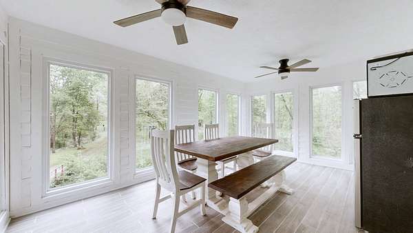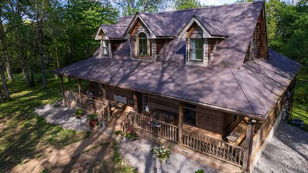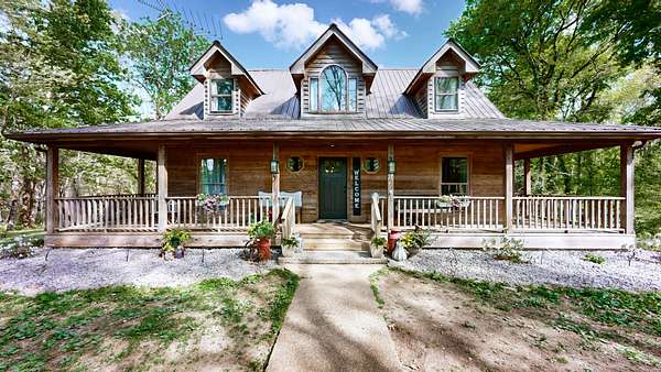 Welcome to your own private 16+ acre retreat/ mini farm, designed for everyday living and unforgettable outdoor experiences. This 3BR/2.5BA home (2,186 sq ft) offers a warm, functional layout with two bright sunrooms, one on each level, ideal for year-round enjoyment, play space, or relaxing with views of the property. A wraparound porch invites morning coffee, evening gatherings, and peaceful sunsets.