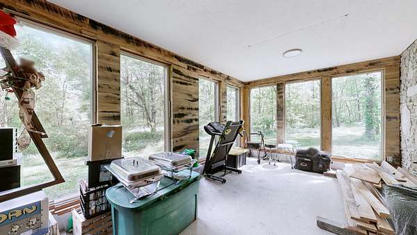 The unfinished basement with a one car garage and workshop provides ample storage and room to grow. Step outside and the property truly comes to life featuring a blend of open pasture and wooded acreage with established trails, perfect for riding, exploring, and outdoor adventure right in your own backyard.