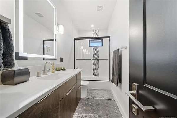 Step inside this stunning 4-bedroom, 3.5-bath home designed for both comfort and entertaining. Featuring two private patios and a spacious outdoor gathering area, this home offers incredible indoor-outdoor living. You'll love the thoughtful upgrades throughout, including automatic closing blinds and curtains and a dream primary suite built for relaxation. With generous living spaces, hosting family and friends is effortless. A standout feature is the downstairs bonus area with a separate entrance, ideal for an in-law suite or guest quarters, complete with a private living room, walk-in closet, semi-private bath, and a secondary primary bedroom. Located in the rapidly growing Bixby area, this home offers the freedom of no HOA while being close to shopping, dining, and top amenities. A rare find with flexibility, space, and modern convenience-this one is a must-see! Contact an agent to see a list of all the amenities today.