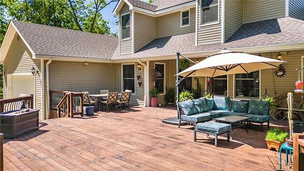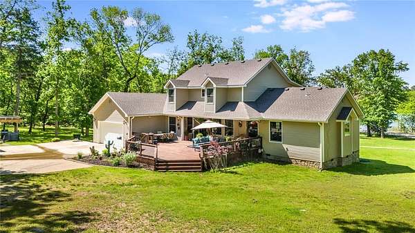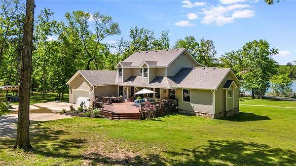 Level lake living on Beaver Lake truly exists, this 4.09-acre lakefront retreat brings it to life with 270ft of shoreline, a private walking path to your own beach, and deeded easement access to a community dock with lift and swim platform. Designed for both relaxation and entertaining offers multiple living areas, abundant storage, and a thoughtful layout that fits the way you live. Recent updates include new roofs, new HVAC, new flooring, a whole house surge protector, new garage and exterior doors, surround sound, Andersen windows, and more. The detached 30x60 metal building has its own 3-bd septic system, full bath, storm shelter, creating endless potential for guest space, hobby area, workshop, or storage for lake toys. Enjoy expansive outdoor living, landscaped stone walkway, greenhouse, garden space, and invisible pet fence. Launch a kayak at sunrise, unwind lakeside at sunset, or fish just steps from your door, it's more than a home, it's the full Beaver Lake experience. Lake. Land. Lifestyle. All in one.