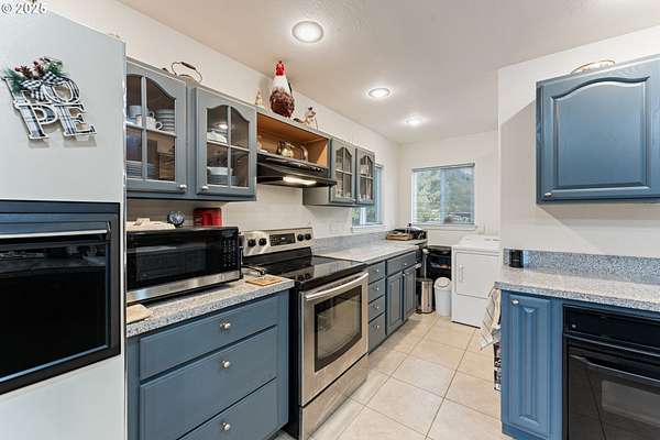 - Builtin Oven, Dishwasher, Free Standing Range, Free Standing Refrigerator, Granite, Island, Pantry, Quartz, Tile