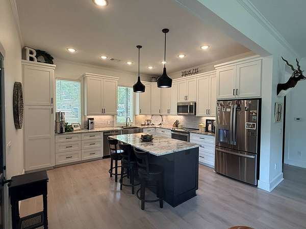 Stunning 3-Bedroom Home with Country Charm Inside City Limits Welcome to this beautifully designed, recently built home that perfectly blends modern convenience with a serene country feel - all within the city limits! Featuring an open floor plan ideal for entertaining, this home boasts 3 spacious bedrooms with large closets, 2 full bathrooms with double sinks, and a convenient half bath for guests. The modern kitchen is equipped with stainless steel appliances and plenty of storage throughout the home. Step outside to enjoy professionally landscaped flowerbeds, large front and back porches, and a fenced-in backyard with a custom rock fire pit - perfect for relaxing or entertaining under the stars. A private pond adds to the peaceful atmosphere and charm. Don't miss this rare opportunity to own a gorgeous, move-in-ready home that offers the best of both worlds - peaceful country living and city convenience!