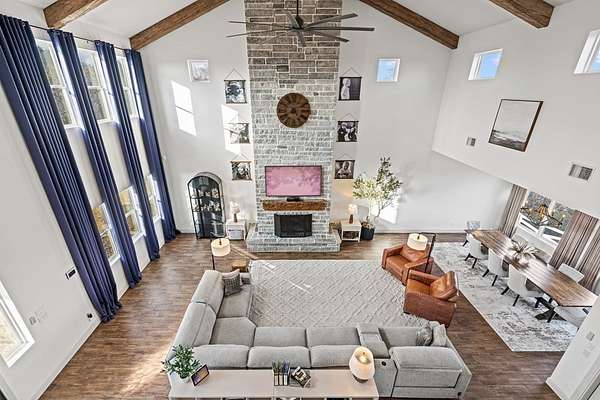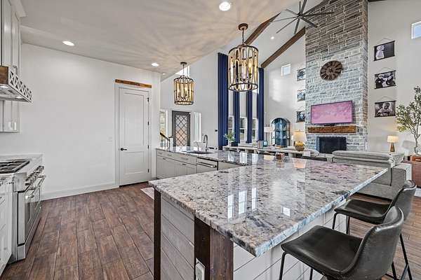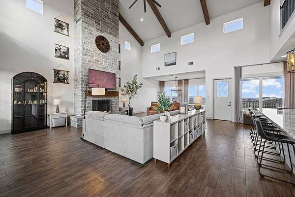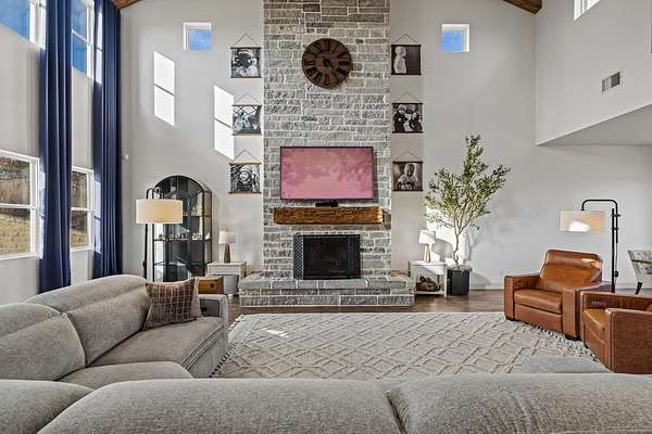 Set in High Point Ranch, 97 Coleman Springs offers 5.19 acres of Texas Hill Country living in Boerne, TX with privacy, views, and everyday functionality. Built in 2017, this modern farmhouse-style home includes 4 bedrooms, 4 baths, and 3,879 sq ft with soaring vaulted ceilings, wood beams, and a floor-to-ceiling stone fireplace that anchors the open living area. The kitchen connects easily to the dining and living spaces and features a large island, stainless appliances, and an oversized walk-in pantry. A finished walk-out lower level with separate entry and additional bonus spaces gives flexibility for guests, a game room, home gym, or office. The 3-car garage, dog wash area, private well, and deck overlooking open skies add practical comfort. Located in Kendall County, this Boerne acreage property combines usable land, modern style, and convenient access to town. Bow hunting is permitted, and elk, whitetail, axis, and turkey are common in the area. A strong Boerne area opportunity.