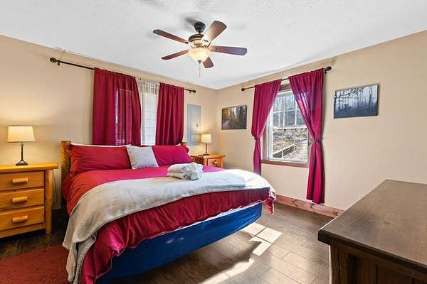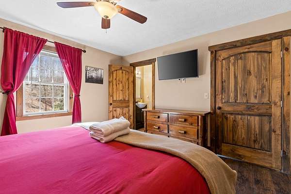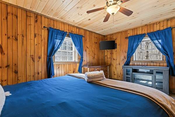 - Cathedral Ceiling(s), Ceiling Fan(s), Furnished, Sheetrock, Wood