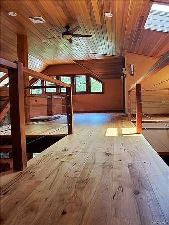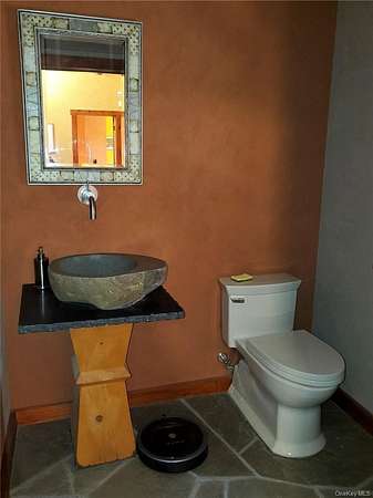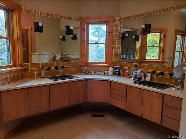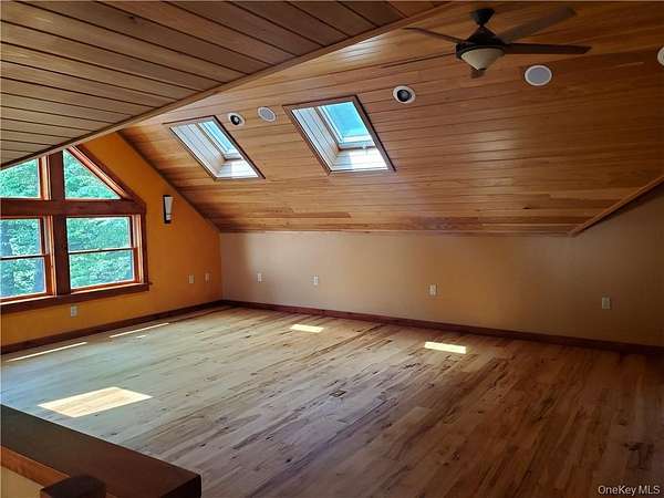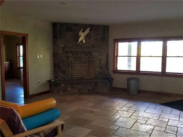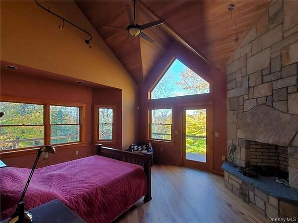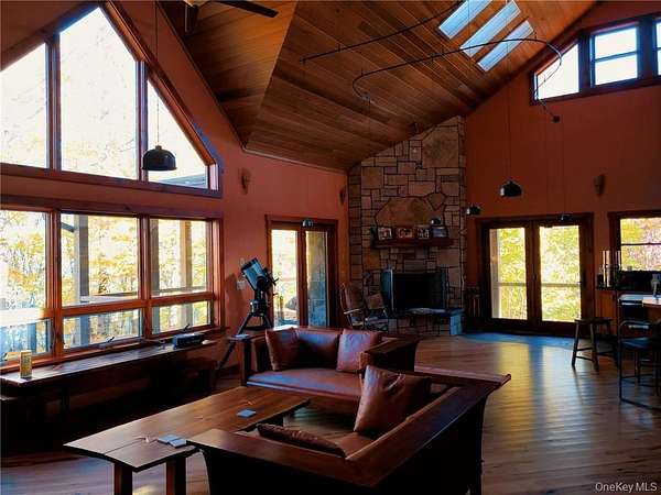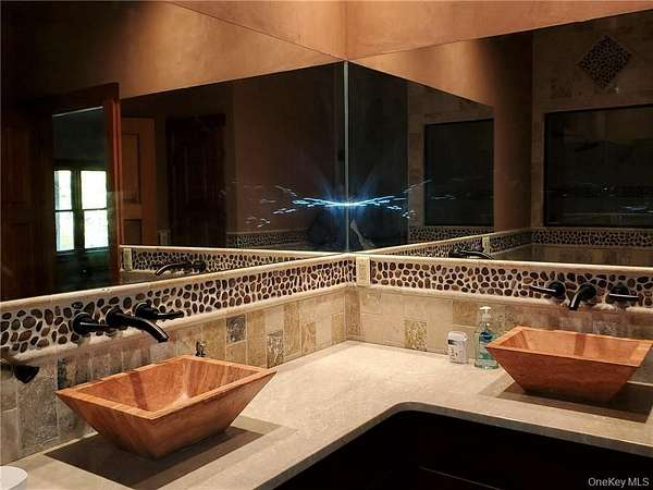 You'll love pulling into your driveway to this multi level, custom built home situated on 5 private lakefront acres in the gated community of Chapin Estates The Peninsula. Located in Bethel NY, only 90 minutes from NYC, and minutes from the famous Bethel Woods Performing Arts Center. Once entering, your stress and worries will fade. With 3 levels, great room, and spacious deck, there is plenty of room for family, friends, and natures playground for the little ones and fur babies. Once you walk through the amazing redwood "Taos" door, you'll be swept into the flagstone entryway, then into the great room with beautiful hickory floors and flanked by 2 massive stone fireplaces. The wall of windows, over looks the Toronto Reservoir and brings in the natural light. A great place for entertaining with the "chef's kitchen, with commercial range/oven and hood. Custom cherry cabinets, granite counter tops and a Brazilian soapstone Island completes the picture. Also on the main level you will find office space, and the master bedroom with fireplace, and a huge master bath, half bath and laundry room. walking to the lower level is sitting room with another fireplace and 3 additional nice sized rooms, currently used for those friends and family who love coming to the lake. Also full bath and utility area. Upstairs from main level is also 2 large rooms to be used for whatever you feel, additional bedroom, art studio, office, yoga room. Moving outside from the great room you will find an extensive covered deck with yet another fireplace and room for dining alfresco, overlooking the lake and woods. That makes the 5th fireplace. This home is amazing and is priced to sell. So if you are looking for a private lakefront retreat, that is reasonably priced, come take a look. You will not be disappointed. Reduced to $1,20000. New rood 11-23 Additional Information: Amenities:Pedestal Sink,Soaking Tub,