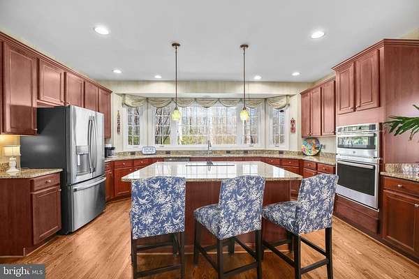 This exceptional home on three acres offers a perfect blend of elegance and beautiful landscaping. Originally the builder's model for Quaker Custom Homes, this property showcases the high quality craftsmanship they are known for, including real hardwood floors, high-end moldings, and designer extras. The main level features a grand two-story family room with a cozy gas fireplace and wall-to-wall windows. The open floor plan flows seamlessly into a light-filled country kitchen, complete with a large granite island, all-new appliances, and a walk-in pantry. The three-car side-load garage is equally impressive, featuring wall-to-wall organizer panels, matching cabinetry, an extra refrigerator, and even has a car charging port. This home has 5 bedrooms all with attached bathrooms (5), one bedroom/office of which is on the main level and has a door leading to a screened in sunny porch. This four season room/porch has a thick clear vinyl roll down curtain custom made for this space and also a built- in room heater ( A/C too) for those cool days in the winter. The spacious owner's retreat has access to a second covered porch, gas fireplace, coffee bar, sink, small refrigerator and two walk-in closets. A spa like bathroom has two seperate sink vanities as well tub and large shower. The finished lower level has a movie room area with built -in cabinets and a kitchenette with bar area. with a full size refrigerator. There is an amazing long vent free two sided fireplace. In addition, located on the lower level is an en-suite with a huge walk in shower perfect for your guests. The walkout basement has easy access to the above ground heated pool which includes, cover, pool robot vacuum & pool liner (2025). Don't miss the shed for extra storage with room for a riding mower and workbench. Big savings on your electric bill with already installed roof solar panels. Roof solar panels were installed in 2020 and have a 25 year warranty. This yard will stay lush with an 8 zoned sprinkler system. As a added bonus this home offers whole house speakers in most rooms for bluetooth music, components convey; there is also a speaker/controller in the garage. It is worth noting the property has city water and sewer, not well and septic as most would expect with a home on this much land. The home is located near shopping and commuter lots and a quick drive to I-95. Come view this amazing home that doesn't disappoint. The sellers are offering a 2-10 home warranty exp. Nov 2026.