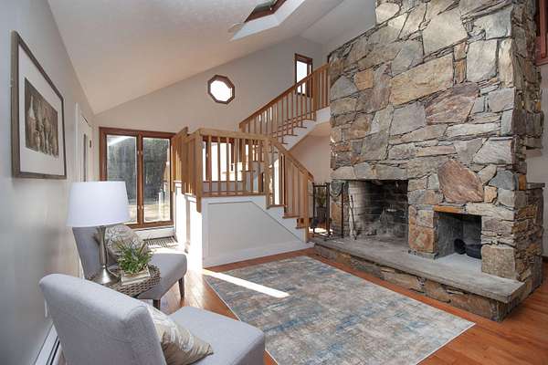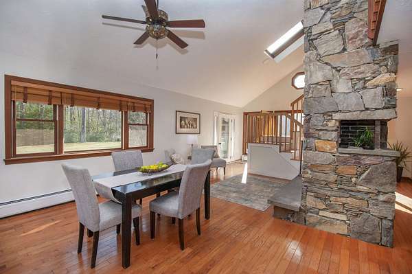 Discover your private retreat in the picturesque town of Deerfield, NH. Set on over 9 acres with serene pond and woodland views, this property offers the perfect balance of tranquility and convenience—just 30 minutes to Manchester or Concord and 40 minutes to the Seacoast. Built in 1986, this beautiful contemporary home features a spacious, open layout with a large, updated kitchen and a stunning masonry fireplace that anchors the living space beneath cathedral ceilings. Expansive windows and skylights flood the home with natural light, bringing the beauty of the outdoors inside. Step out to the screened porch or deck and unwind while taking in the peaceful surroundings w the sounds of waterfalls. The outdoor space also includes an above-ground pool, and the pond offers potential for a small dock—perfect for kayaking or canoeing right from your backyard. A standout feature is the impressive 1,600 sqft garage with 13+ft ideal for RVs, trucks, or a home-based business. With additional space for up to 3+ more vehicles, it’s a dream setup for mechanics or hobbyists—just bring your lift and tools. Join us for Open Houses this weekend: Saturday and Sunday from 11:00 AM to 1:00 PM.