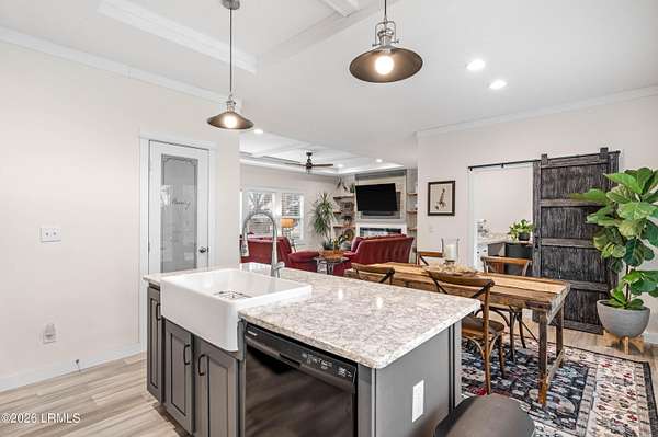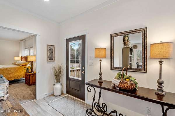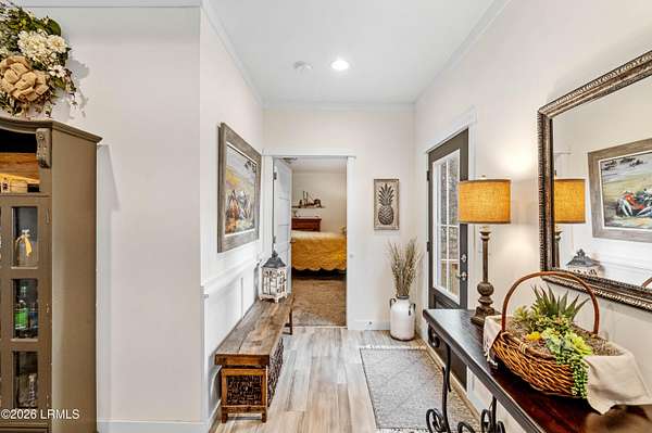 Enjoy premier Lowcountry living in this beautifully designed modular home situated on deep water with approximately 260 feet of navigable waterfront. Set on over two acres, this rare property offers expansive water views, privacy, and direct deep-water access ideal for boating and fishing. Inside, the open floor plan features 9-foot ceilings, custom crown molding, beamed ceilings, large picture windows, and a cozy fireplace. The kitchen includes quartz countertops, an oversized island, ample cabinetry, black appliances, and a farmhouse sink. The spacious primary suite offers a spa-like bath with soaking tub and double vanity. A private deep-water dock completes the property. Homes with this level of acreage, waterfront footage, and true deep-water access are increasingly rare.