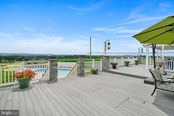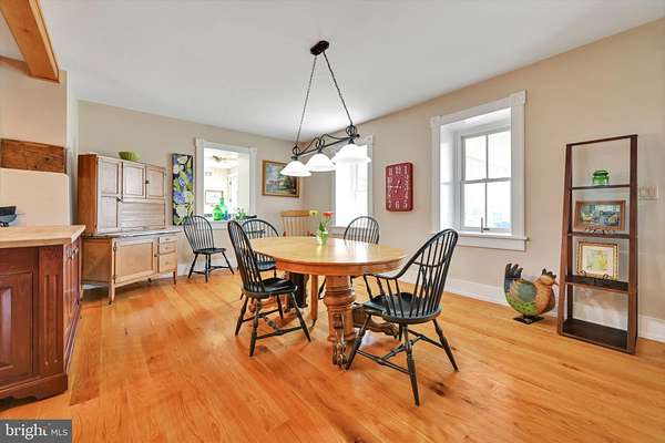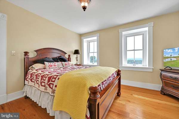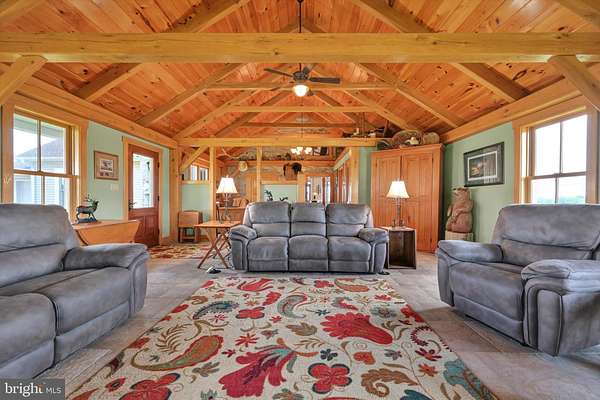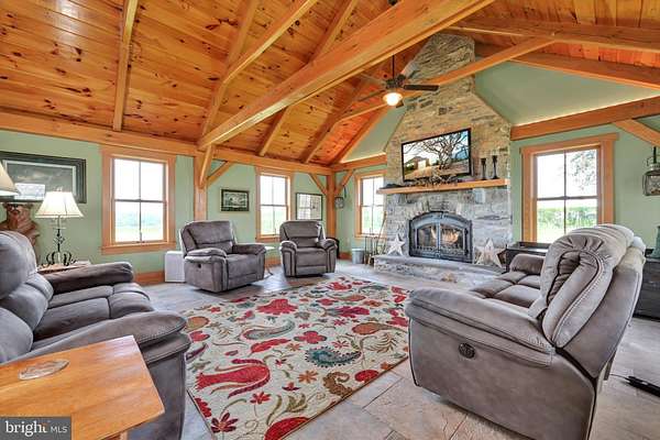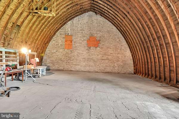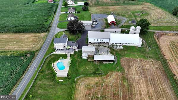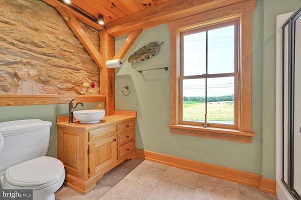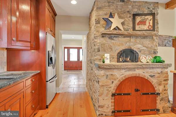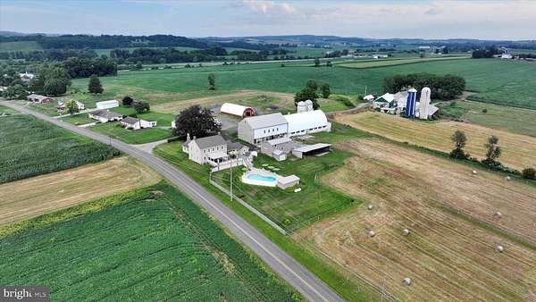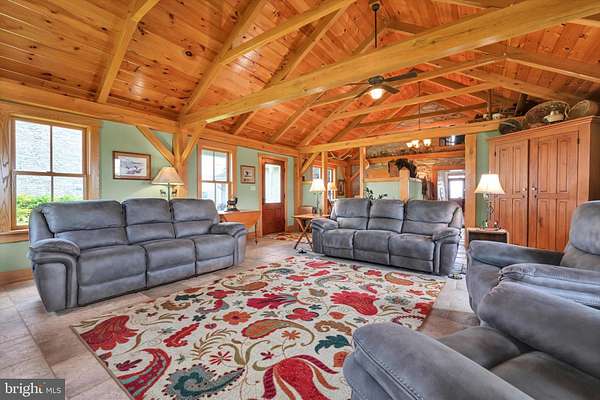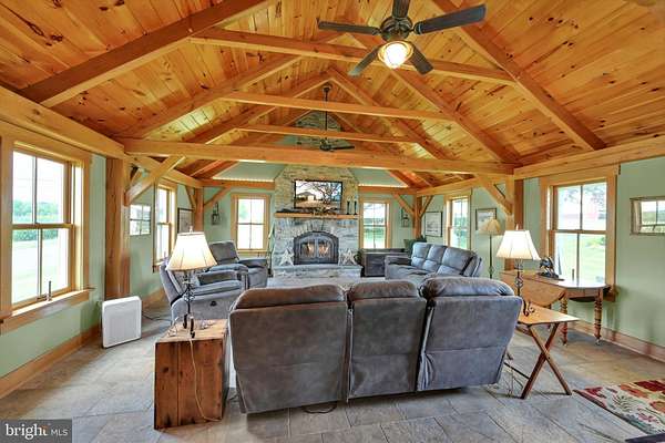 Step into timeless elegance at this masterfully restored 1830 Pennsylvania Dutch Farmhouse nestled on 13 pristine acres. This 6-bedroom, 3.5-bath historic estate has very recently been fully renovated down to the studs using reclaimed materials from the original property and local stone - blending heritage with luxury country living. The entry of the home not only welcomes guests - it tells a story of tradition, refinement, and enduring charm. Thru the solid wood doors, tile flooring underfoot, detailed millwork, and high ceilings offer a blend of timeless craftsmanship and understated elegance. To your left, a hall that leads to a half bath , lunch nook and entryway to the backyard oasis. Lined with built-in custom cabinetry, a commercial size refrigerator and full laundry creates the amazing butlers pantry. The chef's kitchen is the centerpiece, showcasing custom cherry cabinetry, soapstone countertops, a Viking 6-burner gas range, and a one-of-a-kind wood-fired oven that is often used for the most fabulous home cooked meals. Anchored by warm hardwood floors and framed with deep-sill windows, the expansive dining room is designed to be both inviting and functional. Perfectly positioned between the kitchen and living areas, it features an open-concept layout that encourages effortless flow - ideal for everyday family meals or entertaining guests. Natural light fills the space, while the windows offer scenic views of the pool and horse pastures, creating a picturesque backdrop to every meal. Bathed in natural light and warmed by rich hardwood floors, the formal living room on the main floor is a cozy yet elegant retreat. Oversized windows frame postcard-perfect views of the surrounding hay fields. At the center of the room, a gas fireplace with brick surround adds warmth and charm, complemented by handcrafted wood beam supports that honor the home's historic architecture. When your guests get a little too cozy, a thoughtfully designed main-floor guest or in-law suite offers a private bedroom and full bathroom, ideal for multi-generational living. At the heart of the home lies the breathtaking Great Room , a true showcase of traditional Germanic peg-built craftsmanship. Soaring vaulted ceilings and exposed wood beams create an open, cathedral-like atmosphere, while the rich knotty pine finishes bring warmth and rustic elegance. A striking floor-to-ceiling stone fireplace with a wood burning stove not only anchors the space with historic character, but also provides radiant heat that rises to warm the second floor. Bathed in natural light from all sides, this room is both a gathering space and a sanctuary - ideal for cozy evenings by the fire or entertaining under the glow of its timberframed beauty. The charming home office featuring custom cabinetry and desk crafted from trees on the property, set against authentic stone walls and wood beams. The second floor features a spacious primary suite with a walk-in closet and a luxurious en-suite bath, complete with a full-body Jacuzzi shower. Two additional bedrooms each offer generous closets and picturesque views of the surrounding pastures from every deep-set window. A full bath with double vanity and tub/shower combo, along with a discreetly tucked-away laundry area, completes this level. Surprisingly, the third floor opens up to two oversized bonus rooms-ideal for bedrooms, hobby spaces, or guest quarters-each room showcases original wood overhead beams and gleaming hardwood floors. Step out onto the expansive back deck and take in panoramic views of the heated pool, charming pool house, and sweeping horse pastures beyond. A lighted stone staircase gracefully descends from the deck to the pool area, creating an inviting and elegant transition for both daytime enjoyment and evening entertaining. REMARKS CONTINUED BELOW :