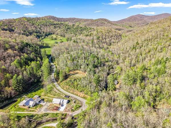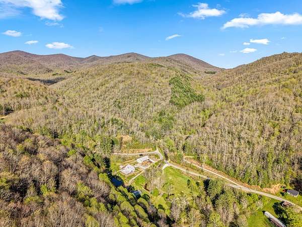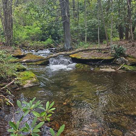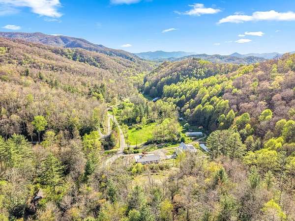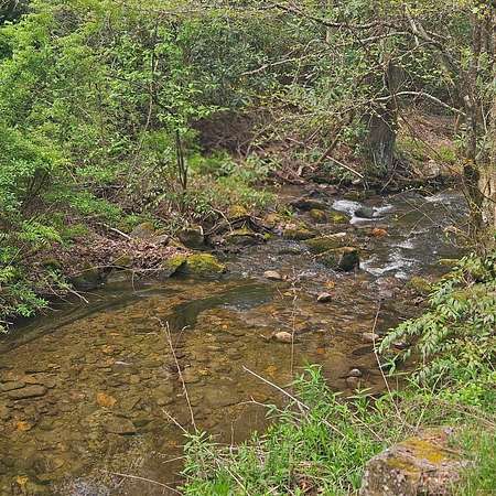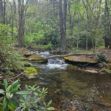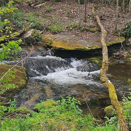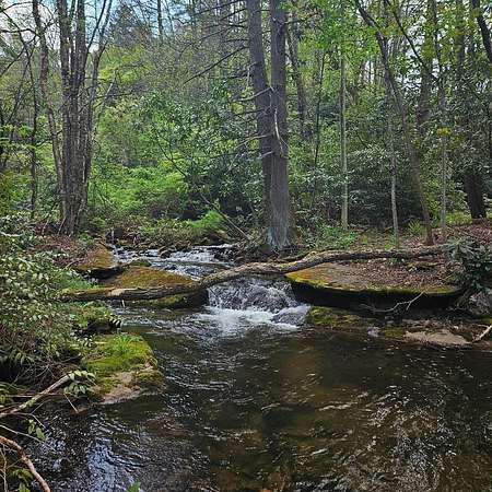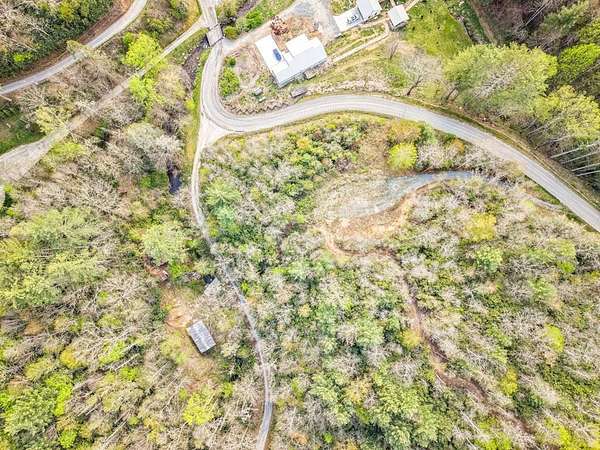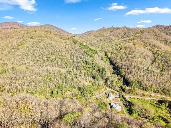 From Wayah Road, turn onto White Oak Road. Follow White Oak Road to the end, then turn right. Continue to the intersection where Cold Springs Creek Road and Sam Waters Road meet. The property begins there and extends across the road in several areas down to the creek. The driveway entrance is located on the right side of Sam Waters Road at 97 Sam Waters Rd.