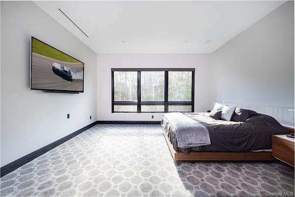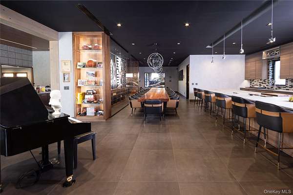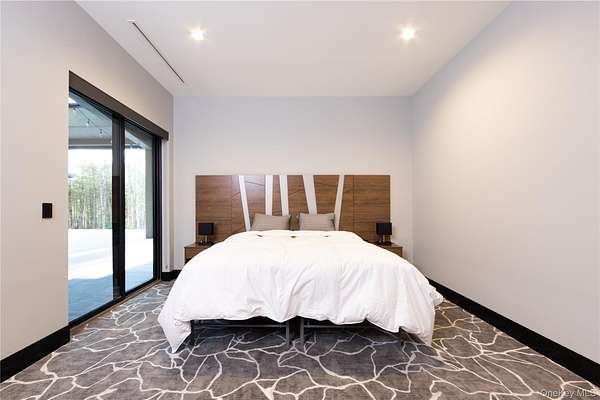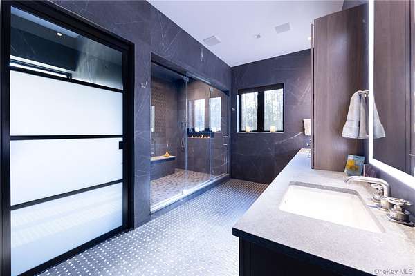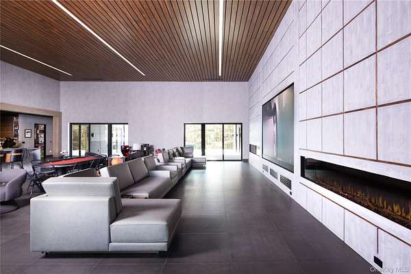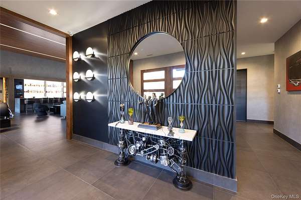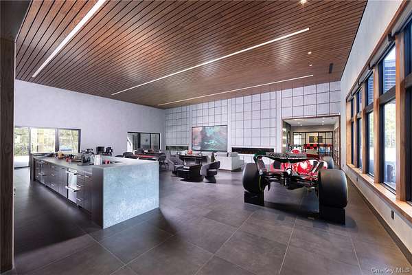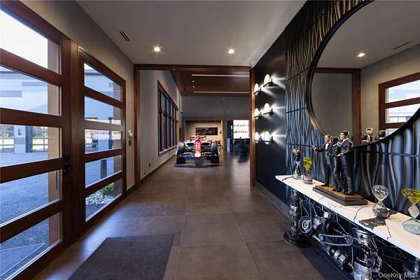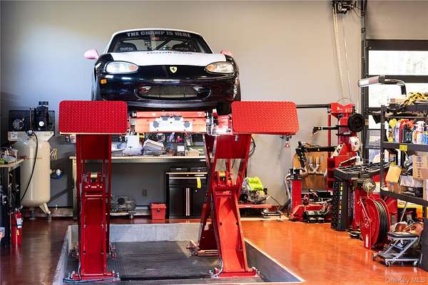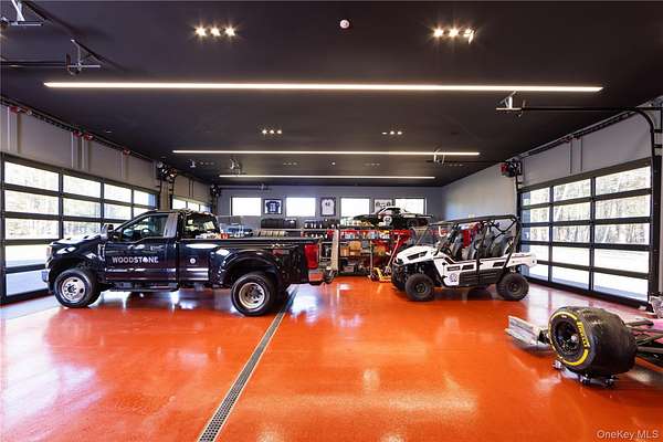 An Exclusive Masterpiece: 97 Serenity Lane, Monticello, NY 12701 A truly rare opportunity has become available within the prestigious, gated Motor Club Estates. This magnificent estate on 5 private acres offers an unrivaled blend of modern luxury, world-class technology, and automotive enthusiast facilities, all housed within an almost 8,000 sq. ft. residence featuring 4 bedrooms and 4.5 baths. No detail has been left untouched in this meticulously curated home. * also comes with a Gold Membership at the Monticello Motor Club. Interior Excellence & Technology Step inside to Italian porcelain flooring and experience a seamless flow enhanced by a Lutron automated lighting system and a whole-house Sonos audio system. The Great Room serves as the ultimate entertainment hub, boasting a breathtaking 149-inch Planar television wall and a sophisticated CertainTeed walnut acoustical ceiling. For the connoisseur, a climate-controlled, 300-bottle glass wine cellar provides a dramatic backdrop for entertaining. The custom chef's kitchen features an oversized island with integrated wireless charging stations, perfect for casual gatherings, while the formal dining area centers around a stunning custom 18-person dining table. A true centerpiece for any motor enthusiast, the home proudly features a full-scale 1:1 Alfa Romeo F1 Show Car display, blending high-octane passion with architectural design. Uncompromising Comfort & Sustainability The entire home ensures year-round comfort with geothermal heating and cooling (backed by electrical heat) and luxurious heated radiant flooring throughout. Furthermore, the property operates efficiently with Tesla solar power and backup batteries, providing superior sustainability and peace of mind. Every one of the four bedrooms is a private retreat, featuring its own exquisite en-suite bath. Outdoor Oasis Extend your living space onto the spacious covered outdoor patio. This al fresco haven is designed for year-round enjoyment, equipped with automated electric screens, an outdoor television, integrated speakers, and a cozy fireplace. Unwind on one of the three heated stone lounge chairs, offering a spa-like experience under the stars. The exterior is finished with maintenance-free Trespa siding, manufactured in the Netherlands. The Ultimate Garage & Workshop For the serious collector or mechanic, the garage is a facility built without compromise. It features a professional-grade setup including an Omer in-ground scissor lift with flip-up jacks, a Hunter tire changing machine, a Hunter wheel balance machine, and two Ingersoll Rand 80 gal air compressors. Utility is maximized with two Nitrogen tanks with hoses, ample tire storage racks, and a power washer with a hot/cold mixing valve. All of this rests on a durable stone hard floor coating, rated for 10,000 psi. This property is more than a home; it is a lifestyle statement offering technology, luxury, and unparalleled amenities. Private showings are available upon request to qualified buyers.