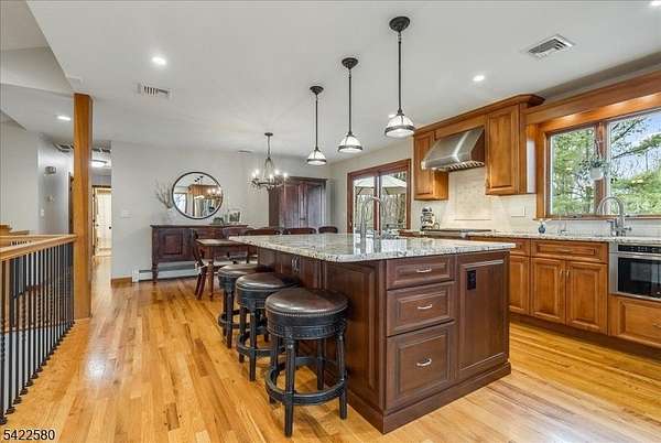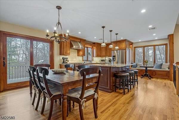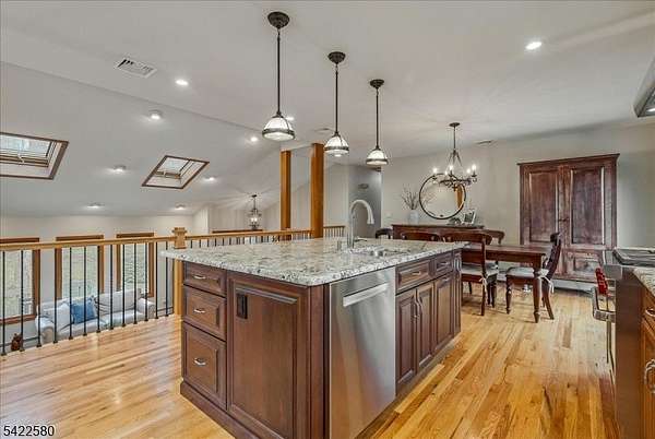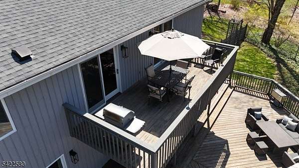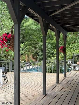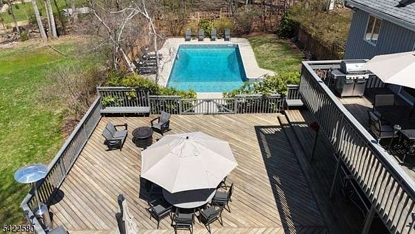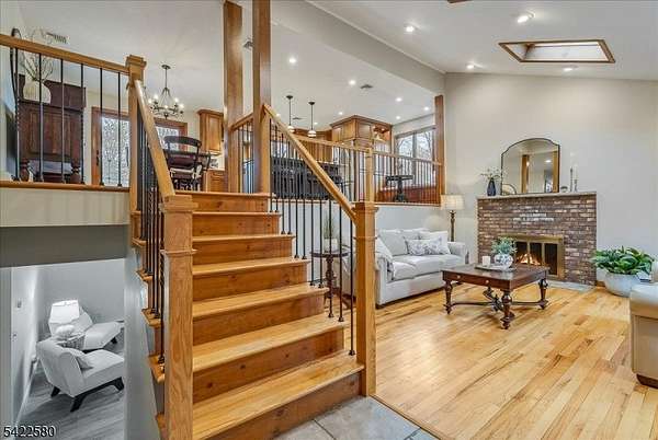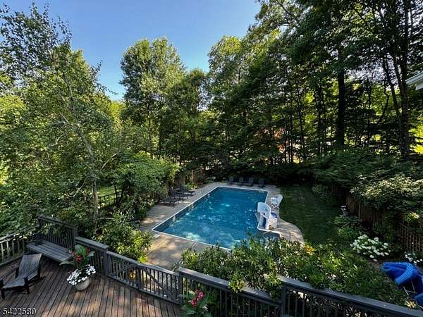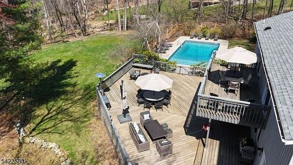 Welcome to 97 Skyline Drive, a stunning 4-bedroom, 2.5-bath retreat set on nearly 3 private acres near the end of a quiet cul-de-sac. From the moment you arrive, this home delivers resort-style living with an in-ground heated pool, two expansive decks, and a lush, wooded backyard that transforms into a canopy of privacy each spring and summer. The open-concept main level is flooded with natural light through soaring ceilings, skylights, and oversized windows. A gas fireplace anchors the living room, while the chef's kitchen dazzles with a professional Wolf gas range and hood, custom cabinetry with full-depth pull-out shelves, and a large island with its own prep sink. A charming window seat with built-in drawers, device charging ports, and a kick heater completes the kitchen's warmth and function. Step through the dining room or primary bedroom onto the upper deck perfect for sunset dinners. Below, the lower deck flows directly to the pool area, wrapped in mature landscaping that creates an intimate, wooded oasis all season long. The level, fenced backyard offers generous space for gatherings. The ground level offers even more room to spread out, a spacious family room with sliding doors to the deck. This level also features a dedicated laundry room and access to the garage. And there's still more: a finished room below provides the perfect flex space for a home theater, gym or playroom. With 3 full levels of finished living space, this home truly has room for everyone.